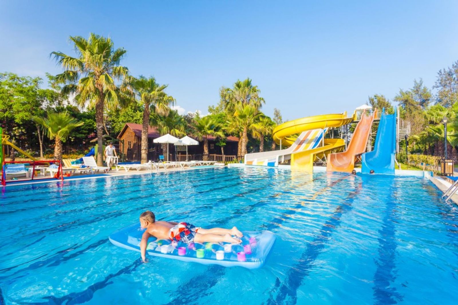 На територията на хотела: Денонощна рецепция, два открити басейна, един от които с 4 водни пързалки, вътршен басейн, основен ресторант, открита тераса, снек ресторант, 3 бара, 3 А Ла Карт ресторанта ( Рибен, турски и италиански – с предварителна резервация, срещу доплщане), СПА център, фитнес зала.