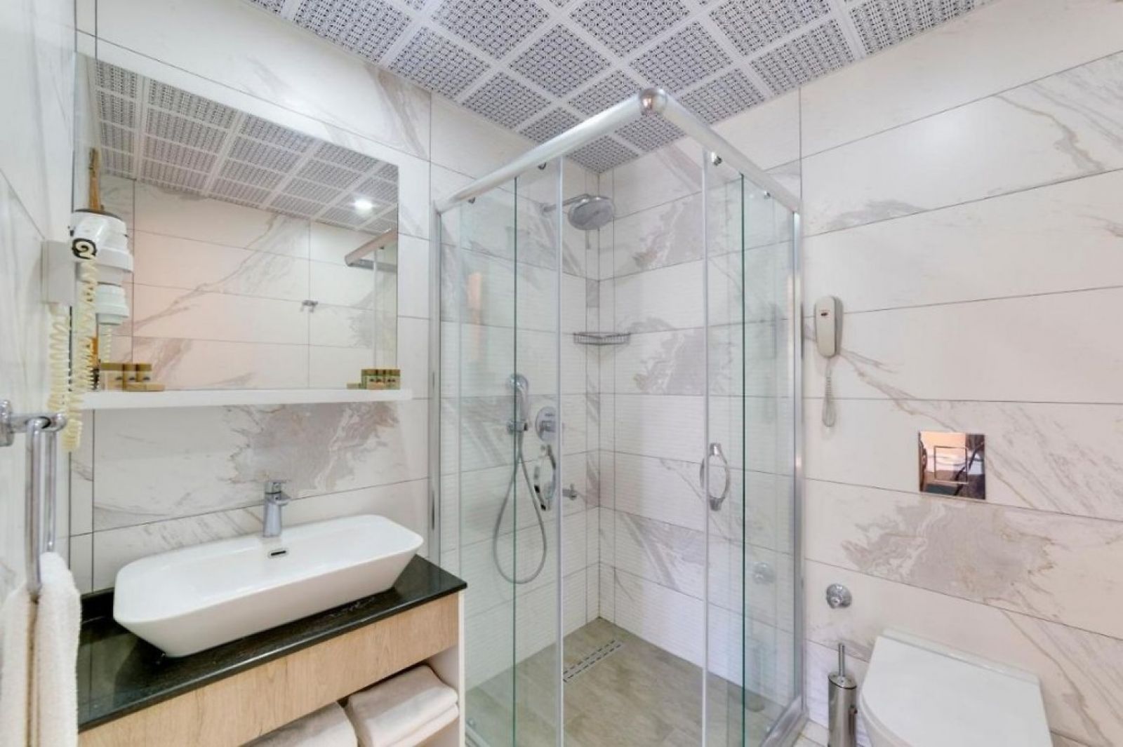 В стаите: Хотелът предлага сейф в стаята, безплатен достъп до интернет, смяна на спално бельо три пъти седмично, индивидуален климатик, 24-часов рум сервиз, телефон, ежедневно почистване, сешоар, балкон или тераса, безплатен минибар с ежедневна вода, душ и телевизор.