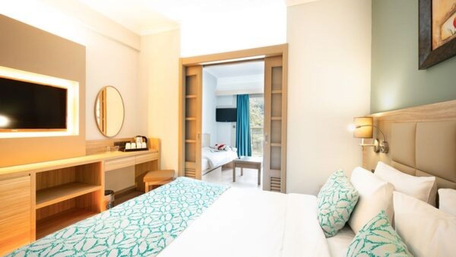 За децата: За децата хотелът предлага два басейна (един вътрешен, един външен), 12 водни пързалки, мини клуб за деца от 4 до 12 години, детегледачка (срещу заплащане), бебешка количка (срещу заплащане), детско меню, детско столче в ресторанта, детска площадка, развлекателни програми и бебешка кошара по заявка.
