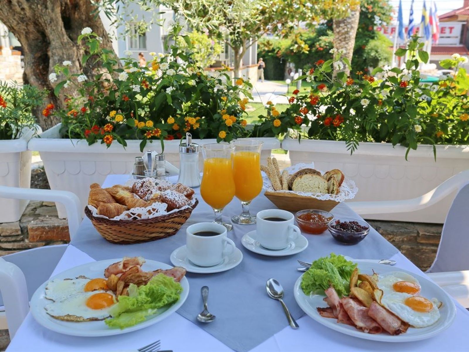 В Ханиоти, на 5 км. от Полихроно, на 5 км. от Пефкохори, на 90 км. от летище "Македония" в Солун. Триетажна сграда. В градчето има ресторанти, механи, барове, кафенета, великолепен пясъчен плаж и красив парк. Разтояние до плажа 100-300 м.
