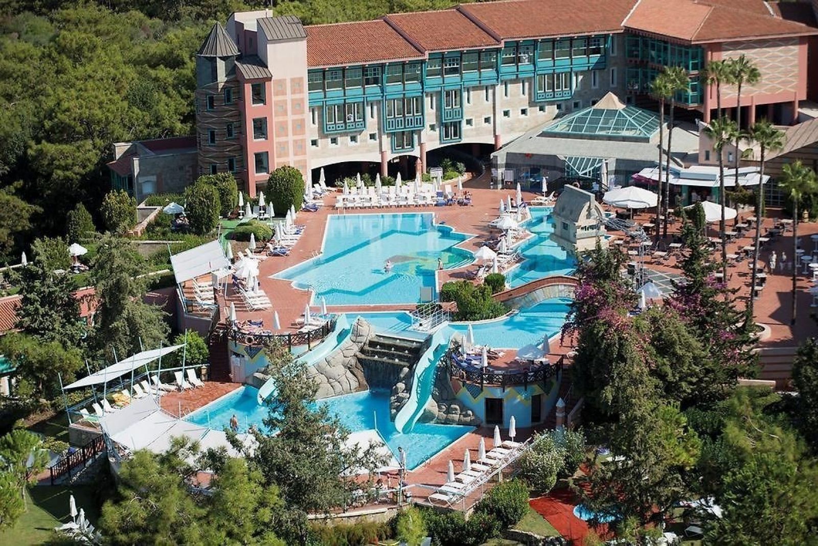 3 основни ресторанта, 5 а-ла-карт ресторанта (с предварителна резервация, срещу заплащане), 10 бара, 11 открити басейна (2 от тях отопляеми), 2 закрити басейна, аквапарк с 18 водни пързалки от различен вид - 22.000 м². Безплатни услуги: Сауна, турска баня, тенис на маса, дартс, стрелба с лък, тенис на корт (19 тенис корта със синтетично и кварцово покритие (през деня)), фитнес, аеробика (занимания по йога, пилатес, стречинг, степ аеробика, X-Co, кардио Body Work Out), водни занимания (водна гимнастика, игри в басейна, aqua zumba, water polo),кану, хайкинг, плажен волейбол, баскетбол, мини-футбол, анимация, жива музика, пералня на самообслужване (безплатно), Wi-Fi интернет (на цялата територия на хотела), паркинг. Платени услуги: Масаж, пилинг, фризьорски и козметичен салон, СПА център, джакузи, солариум, лекар, детегледачка, оборудване за тенис корт, билярд, боулинг (3 писти), видеоигри, интернет кафе, уроци по уиндсърфинг и тенис, водни спортове (Fly Board, Jet Ski, James Bond Safari, Rhino Boat Safari, Power Boat), конна езда, гмуркане, мини-голф.