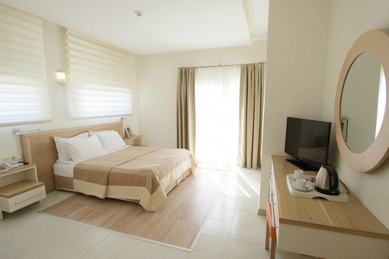 В стаите: Хотелът разполага със 181 стандартни и фамилни стаи, разпределени в 14 двуетажни сгради. Всички стаи са оборудвани с: климатик, телевизор, телефон, баня с душ/вана, сешоар, мини бар (платен), сет за кафе и чай, сейф (безплатен), балкон/тераса с гледка към басейн или градина, Wi-Fi - на цялата територия на хотелът.