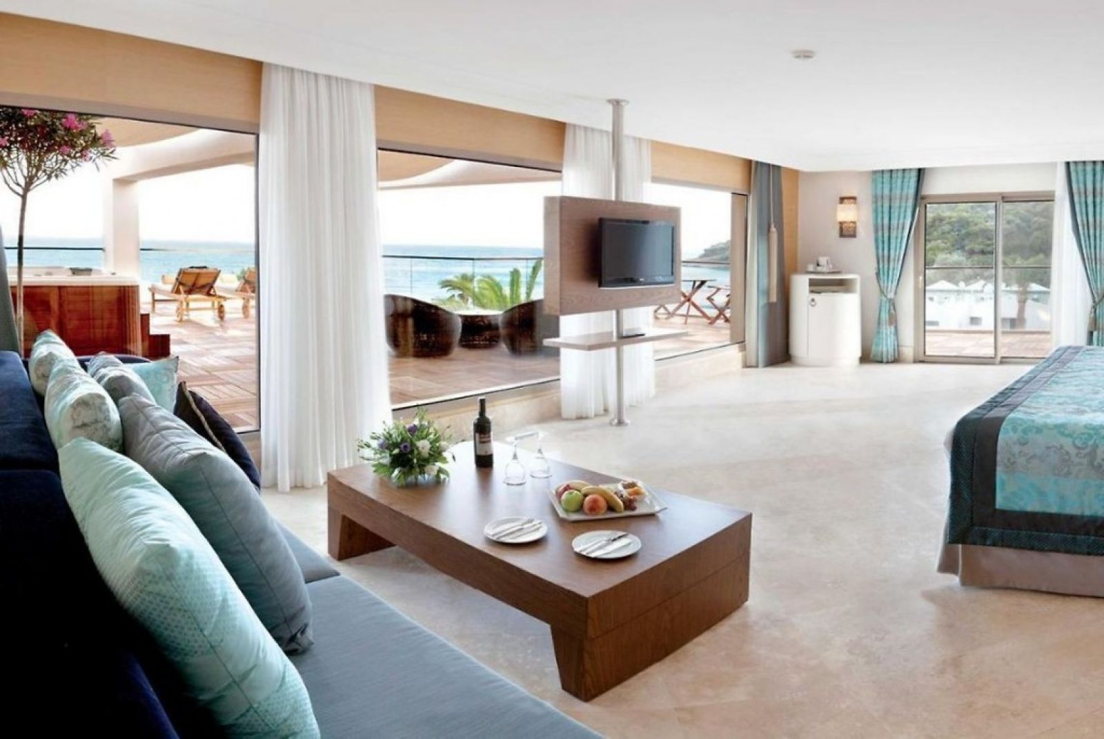 В стаите: Хотелът разполага с общо 268 стаи, разпределени в два 5-етажни корпуса: 88 Standard garden view (33 кв.м), 104 Standard sea view (33 кв.м), 36 Standard Pool Side (директен достъп до басейна, с индивидуална тераса с шезлонги - 33 кв.м), 20 Terrace Suite стаи (директен изглед към море, джакузи на терасата, безплатен рум сървис 24/7, комплимент при настаняване - 70 кв.м), 20 Family Suites (гледка градина, спалня и всекидневма с преградна врата, баня с душ и вана - 65 кв.м), 2 Handicapped (пригодени за хора с ограничена подвижност - 33 м2). Всички стаи са оборудвани с климатик, телевизор, телефон, баня с душ, сешоар, сет за чай/кафе, минибар (ежедневно зареждане с вода и безалкохолни напитки - безплатно), сейф (безплатно), балкон.