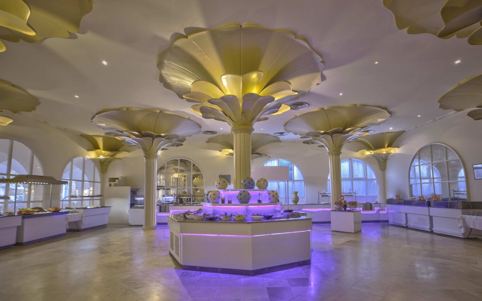 Основен ресторант Les Zinnias, а ла карт рестоирант Tunisiano с тунизийска кухня (платен, едно безплатно помещение на престой след предварителна резервация), лоби бар, бар басейн, плажен бар, диско бар (платен), мавританско кафене, анимация, аеробика, боча, мини голф, тенис корт, 2 външни басейна, единият от които с водни пързалки, сувенирен магазин, 24 часова рецепция.