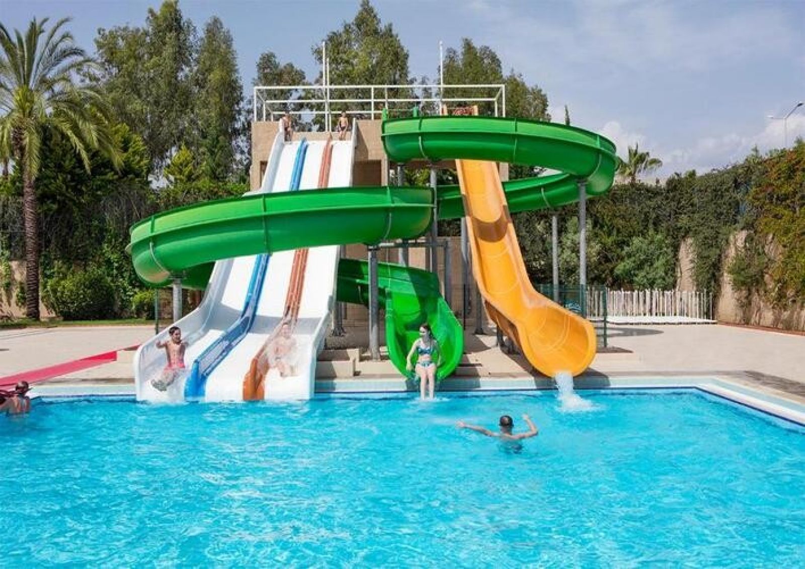 За децата: детски басейн, 2 басейна с водни пързалки за деца, мини клуб, детска площадка.
