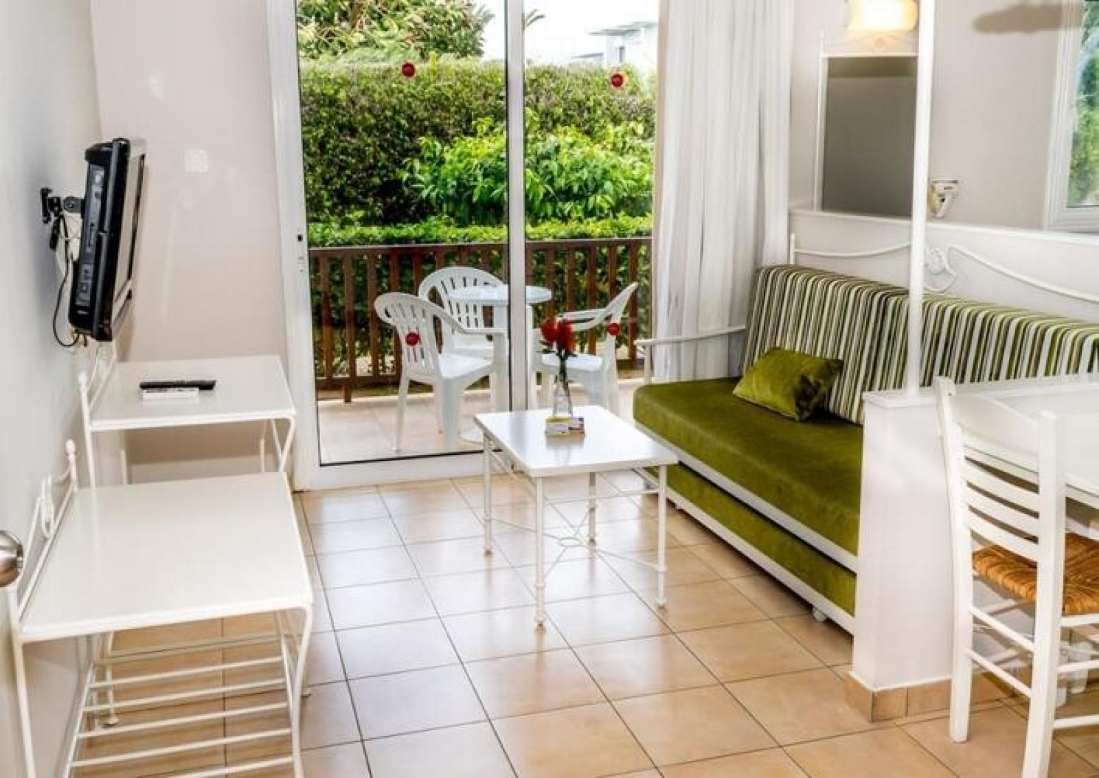Откритата тераса е идеална за вечерно питие от бара. Ресторантът на хотела предлага гръцка и международна кухня.