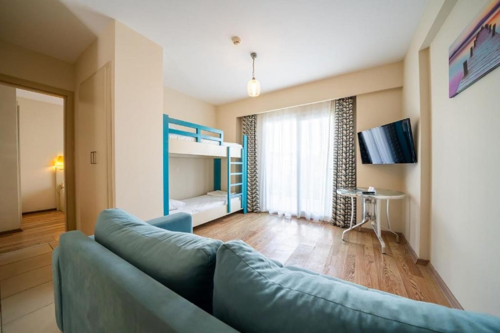 За децата: Хотелът разполага с две водни пързалки, детска площадка, детски басейн, детски клуб за деца на възраст от 4 до 12 години и услуги за гледане на деца, които се предлагат срещу заплащане.