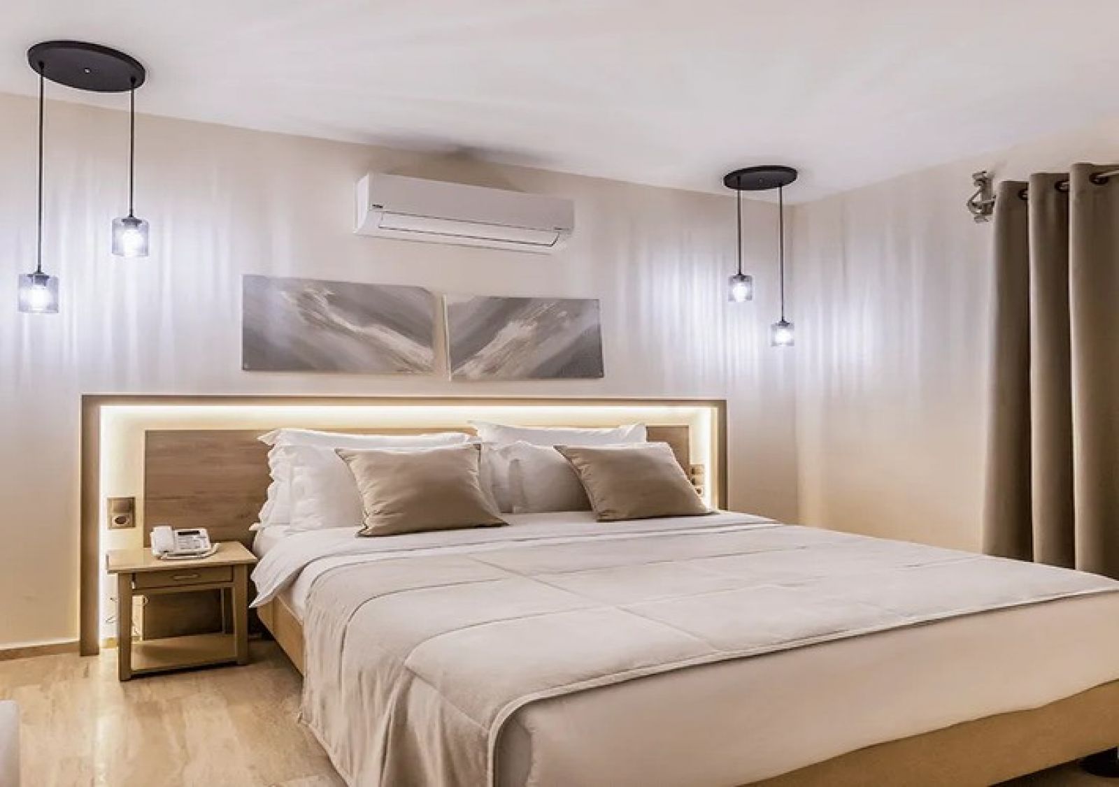 Всички стаи: SUPERIOR ROOM, DELUXE ROOM, JUNIOR SUITE, KING SUITE, в хотел Manzara са оборудвани с климатик, телевизор със сателитни канали и минибар. Има сейф и самостоятелна баня със сешоар.