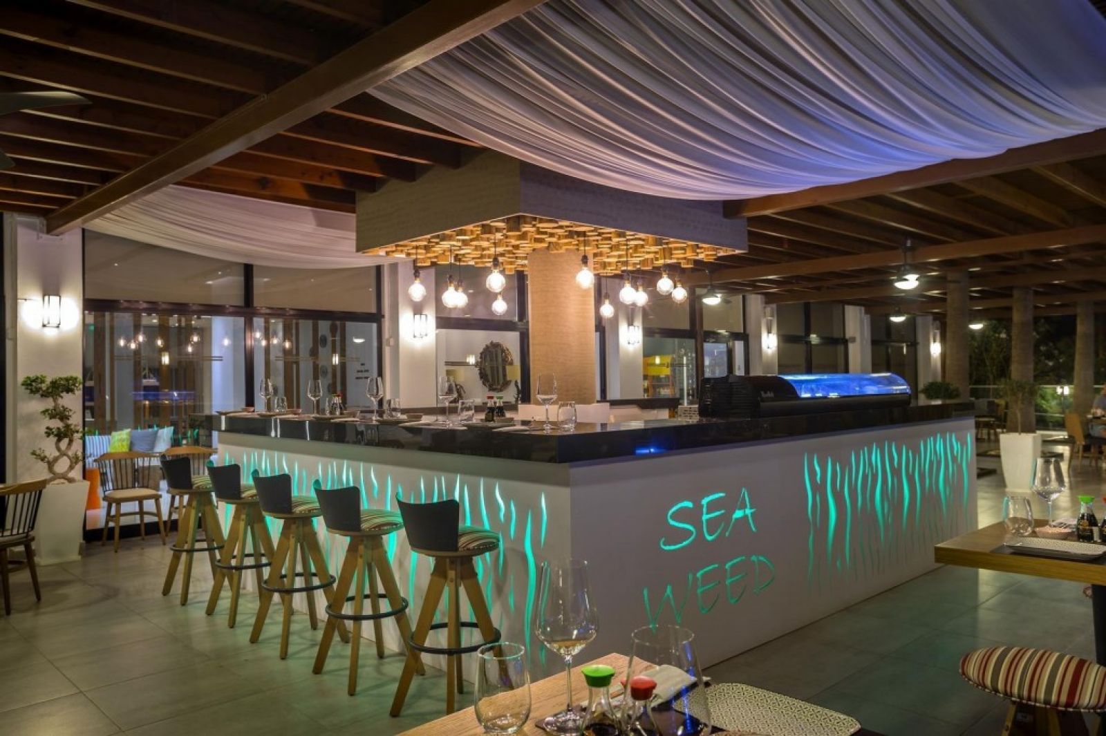 Ресторантът на хотел Maris Beach сервира средиземноморски ястия и международна кухня. Барът предлага освежителни напитки и леки закуски.