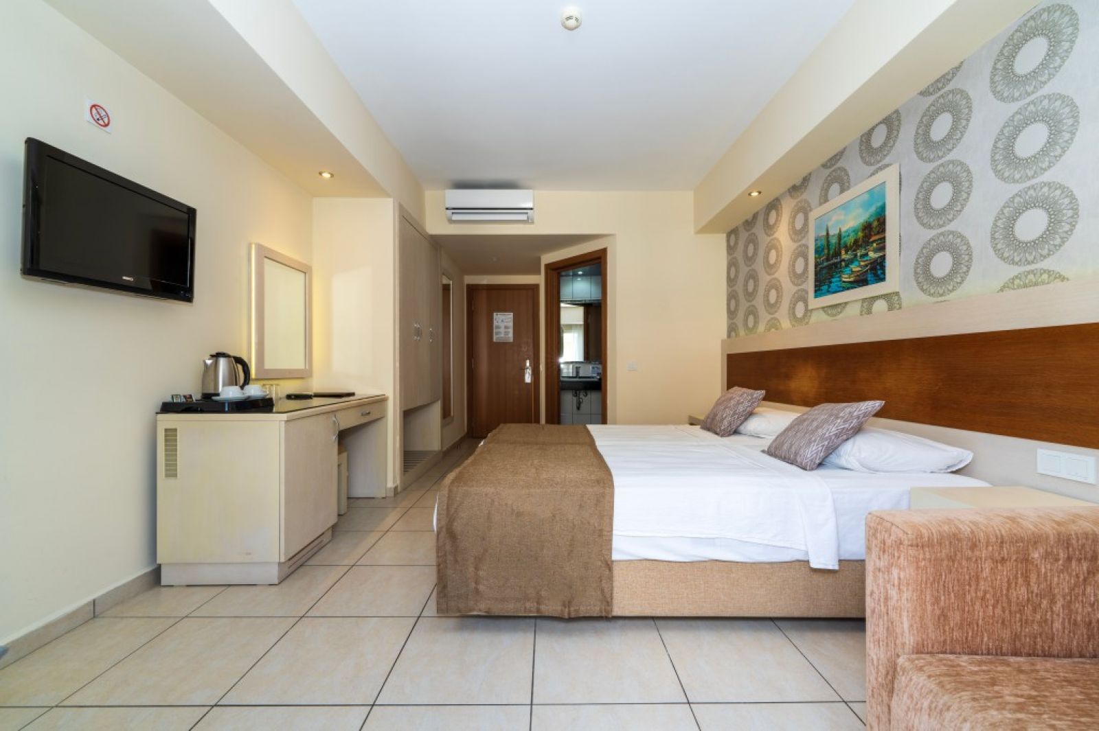 В стаите: Разполага с общо 150 стаи. Стандартни стаи - 22 m2, подова настилка от керамични плочки, балкон, баня и душ кабина, климатик, сешоар, електронен сейф, сателитна телевизия, директен телефон, минибар и електрическа кана.