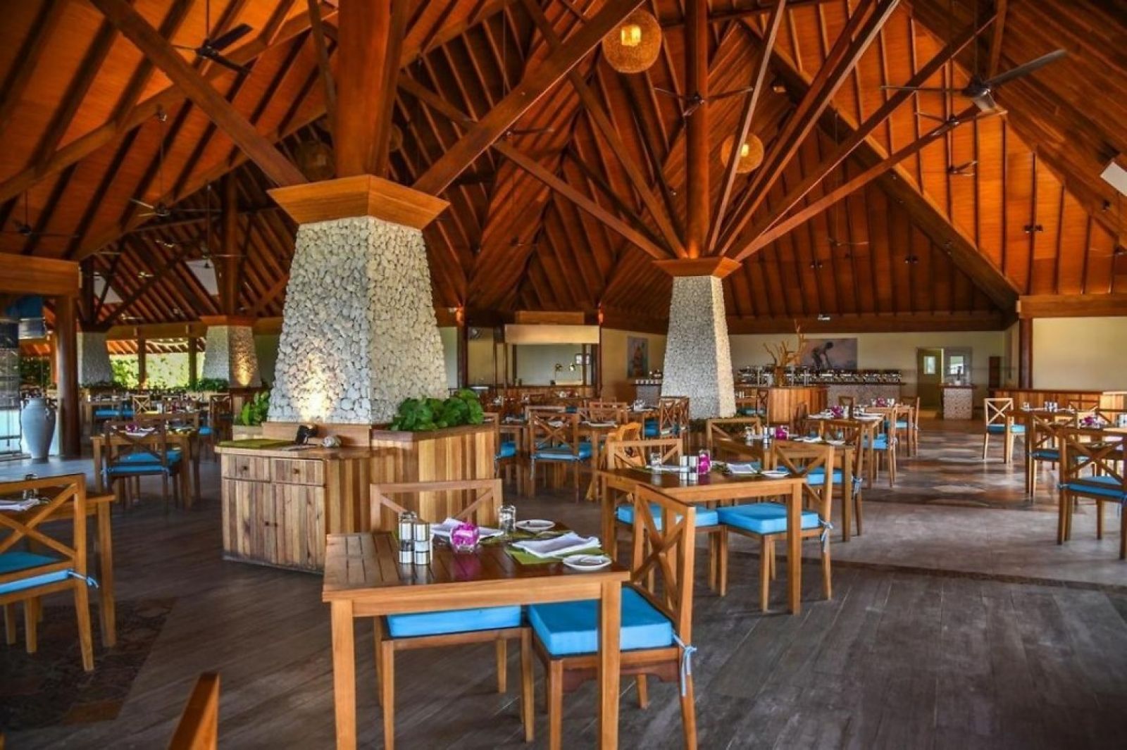 На територията: Има богато разнообразие от ресторанти и барове – пет ресторанта и четири бара, предлагат най-вкусните, автентични малдивски ястия, заедно с грил на живо, бутикова международна кухня, пици на дърва и тандури.