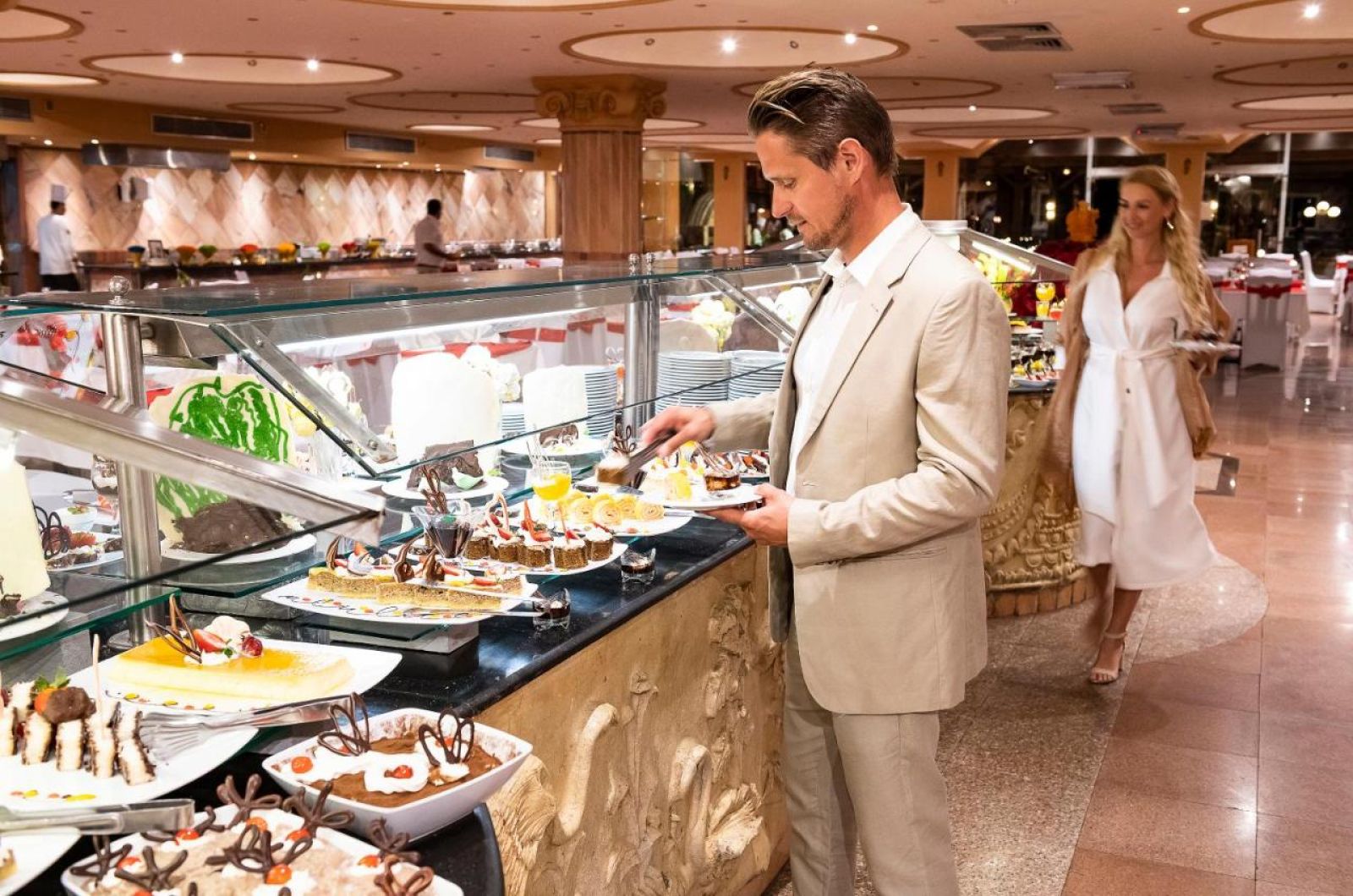 Основен ресторант, а - ла - карт ресторант (италиански, едно безплатно посещение, с предварителна резервация); възможност за приготвяне на специални ястия за гости хранещи се по специален режим, 3 бара, 3 открити басейна (1 от които отопляем през зимния сезон), СПА център, фитнес, магазини, Wi-Fi – на рецепция.