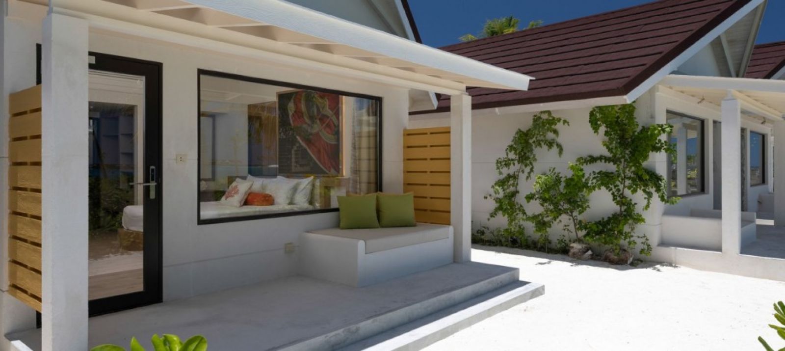 Трансфер с моторна лодка, продължителност 15 минути. Първокласен курортен хотел, който заема целия остров и предлага настаняване както на плажа, така и във водни вили. Всички стаи са стилно декорирани, добре оборудвани, а гостите могат да се насладят и на вкусна храна и бели плажове.
