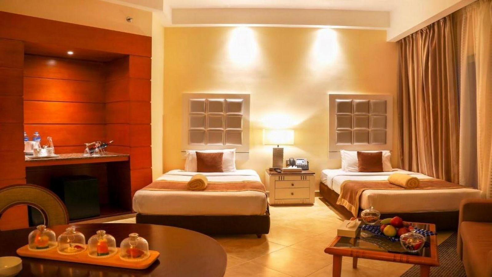 Tropitel Sahl Hasheesh ви предлага голямо разнообразие от стаи и апартаменти със спиращи дъха гледки и размери, които ще задоволят всички ваши нужди и ще ви предложат максимален комфорт и удобство. Хотел Sahl Hasheesh е луксозен петзвезден луксозен хотел с 578 стаи за гости и 7 различни типа стаи, от които да избирате, за да направите престоя си възможно най-приятен. Всички стаи са фино обзаведени в модерен стил със 100% египетски памук, LCD телевизори със сателитни канали, безплатни филми и детски канали, телефони с директно избиране, сейф, кът за сядане и минибар, високоскоростен WIFI (срещу допълнително заплащане и креватчета), (детски легла).