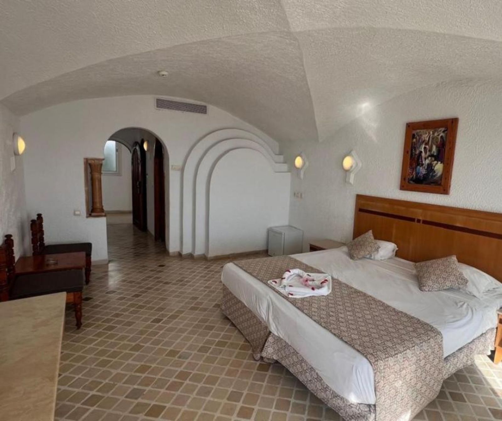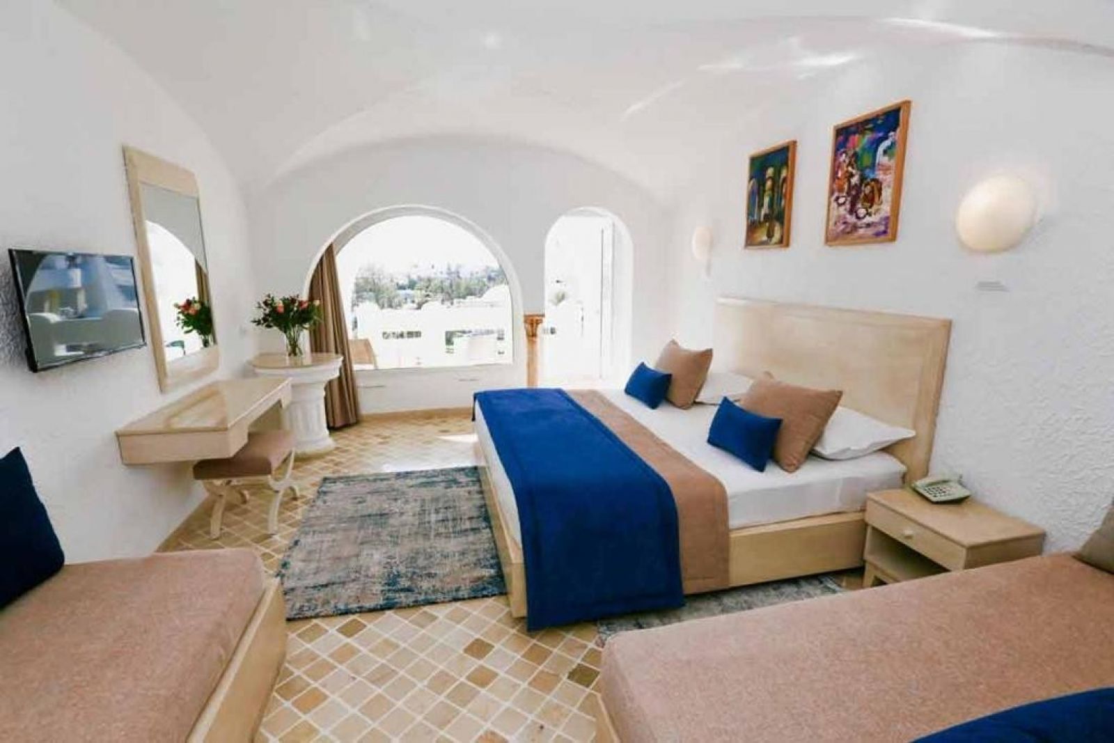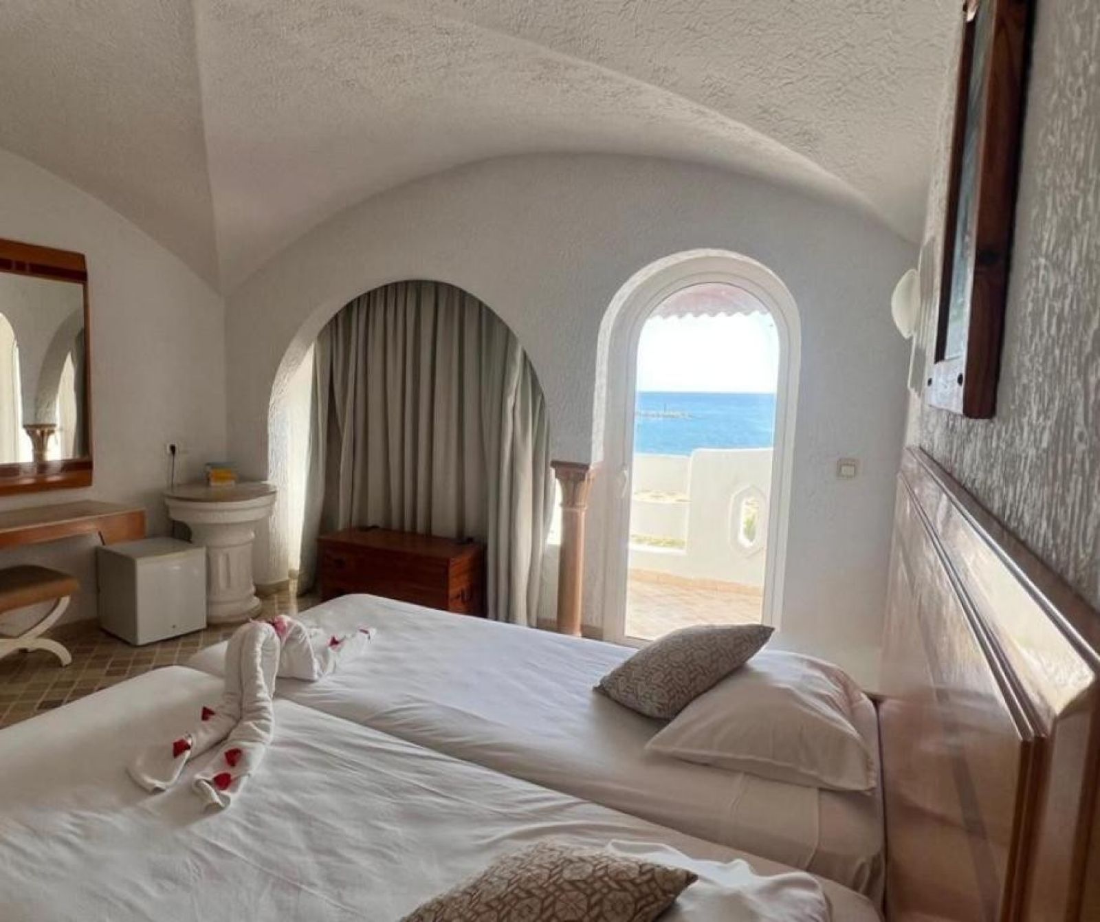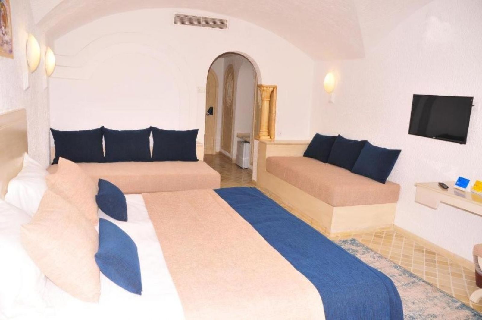 В стаите: Хотелът разполага с 245 стаи, разположени в четириетажна сграда с пет асансьора - Standard Room, Sea View Room, Pool View Room. Всички стаи оборудвани с климатик, телевизор, мини бар (празен), сешоар, сейф (срещу заплащане), баня, балкони или тераса. Почистване на стаите - всеки ден.