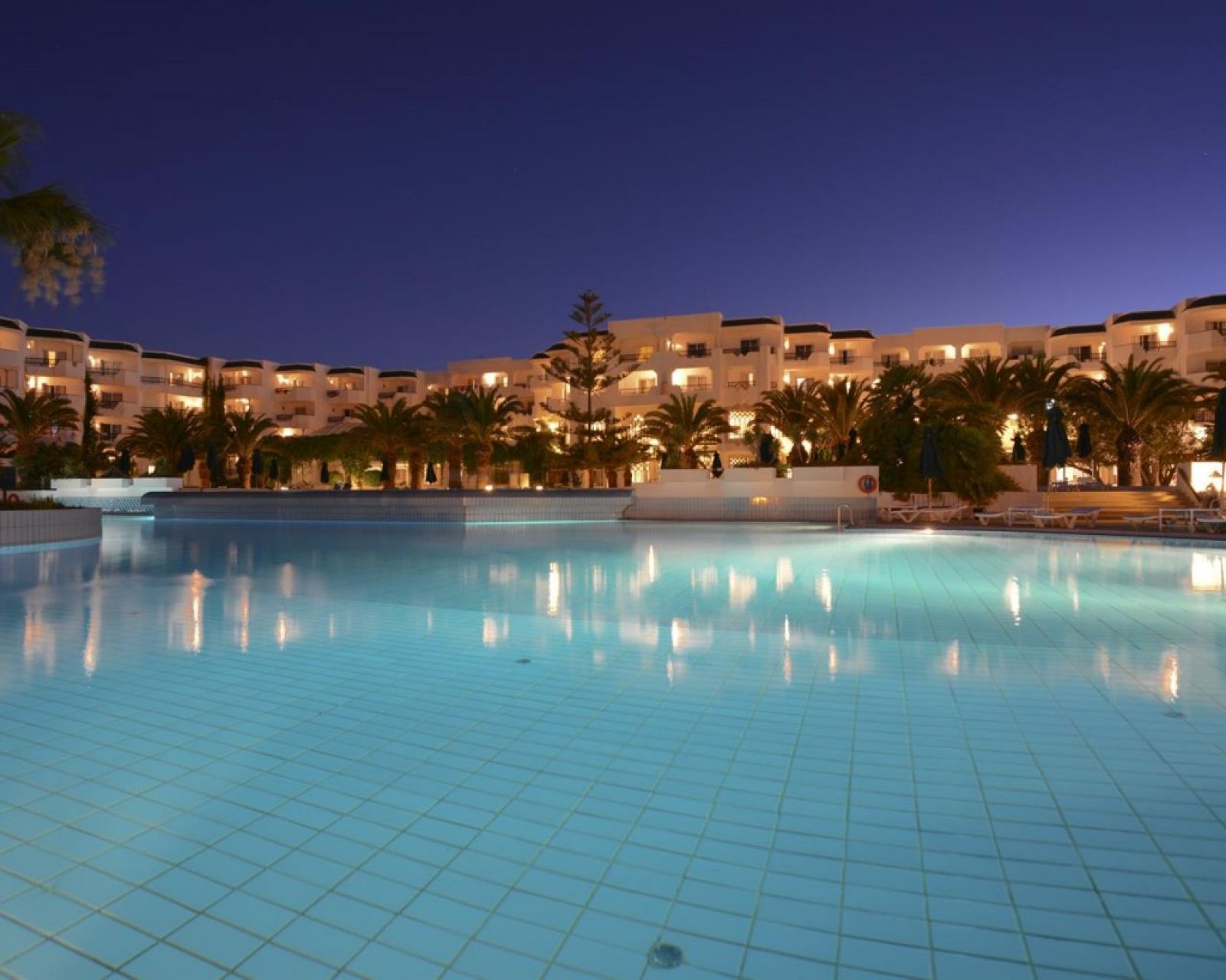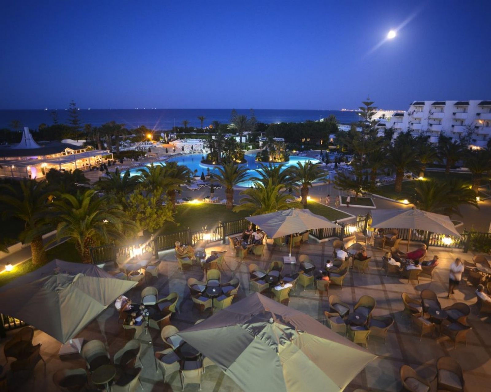 На територията на хотела: Основен ресторант Meridian, снак бар, няколко а ла карт ресторанта ( едно безплатно посещение по време на престоя след предварителна заявка) - а ла карт ресторант със средиземноморска кухня (платен), а ла карт ресторант Sofra с тунизийска кухня (платен), а ла карт ресторант El Pescado с морска кухня (платен), лоби бар, бар басейн, диско бар, мавританско кафене (срещу заплащане), анимация, аеробика и водна аеробика, плажен волейбол, тенис на маса, дартс, боча, външен басейн на две нива с водни пързалки, вътрешен басейн с прясна вода (затворен през Юли и Август), 24 часова рецепция, сувенирен магазин, конферентна зала.