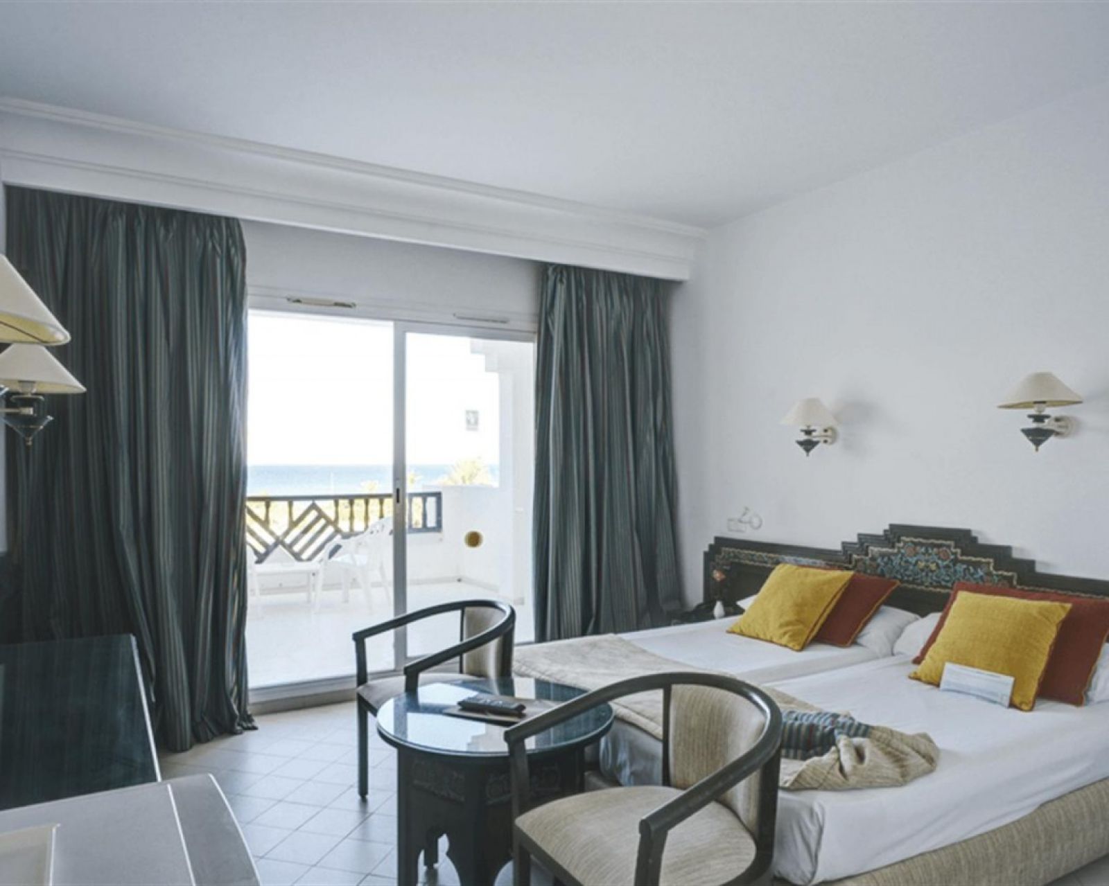 В стаите: Хотелът разполага общо с 307 стаи, разположени в основна сграда с асансьор и в бунгала -·Standard Room (28 кв.м разположени в бунгала), Sea View Room (28 кв.м), Family Room (36 кв.м. разположение в основната сграда и бунгалата). Всички стаи са оборудвани с климатик, телевизор, телефон, Wi-Fi, сейф, баня с душ/вана, сешоар, мини бар (еднократно се зарежда при пристигане с бутилка вода), тераса. Фамилните стаи могат да са с две отделни спални или едно голямо помещение. Ежедневно почистване на стаите.