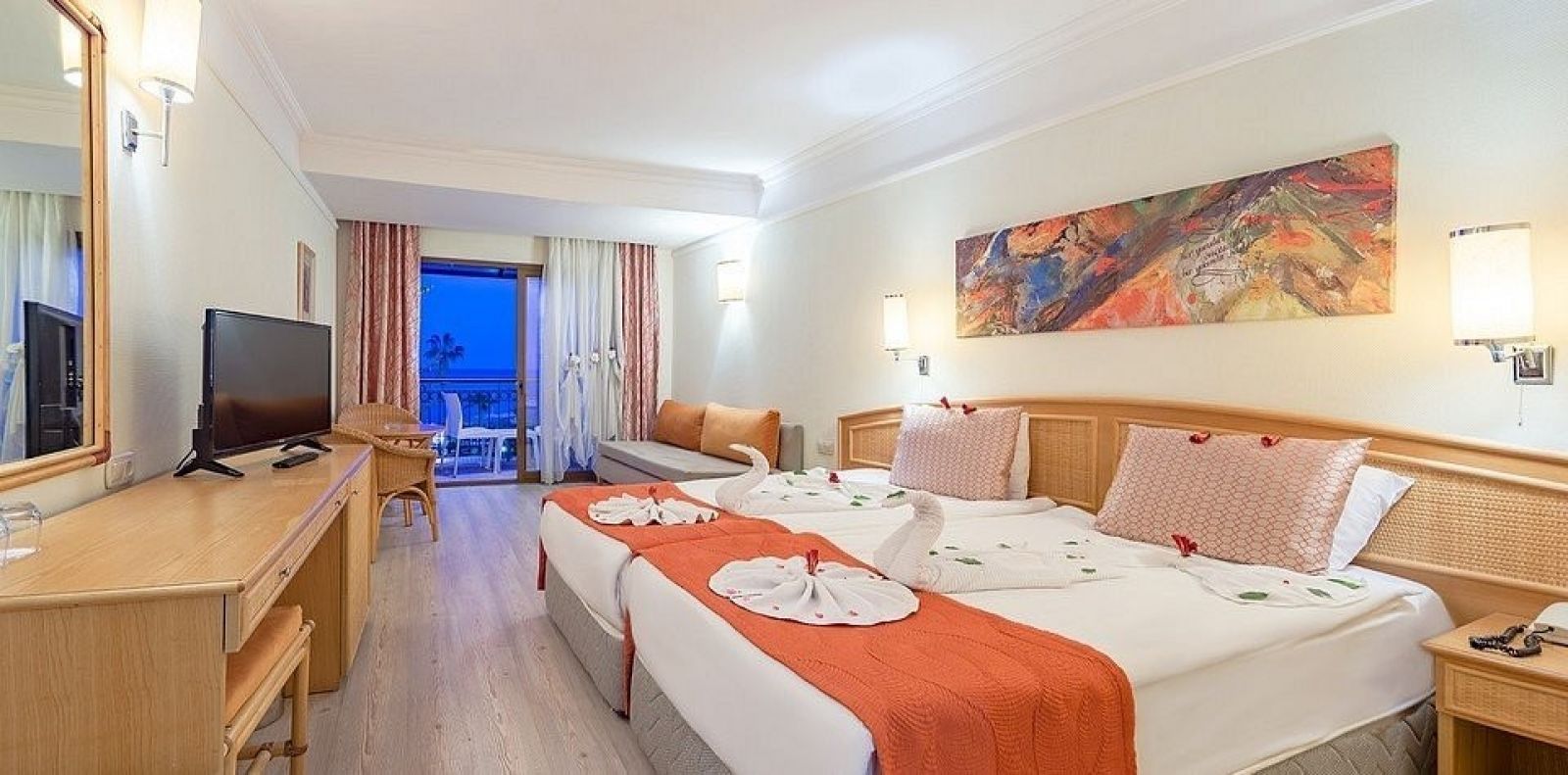 Разположение: Хотелът се намира на 65 км от летище Анталия, на 10 км от Кемер, в село Чамюва, на самия бряг на морето.