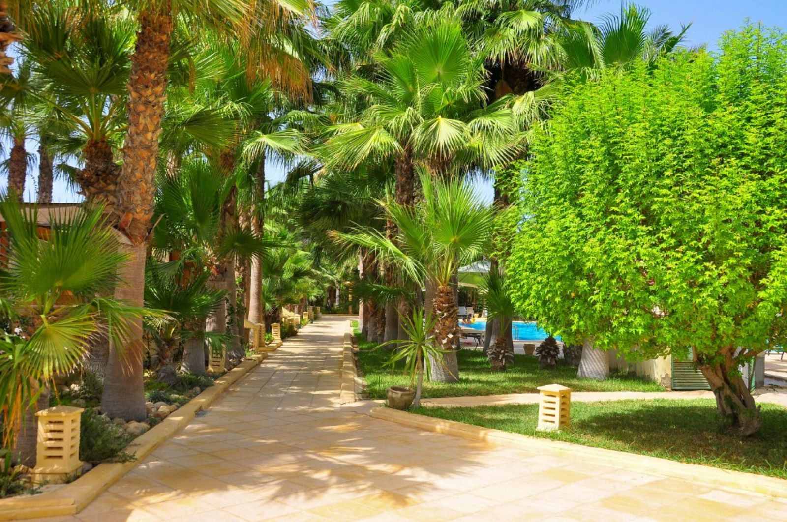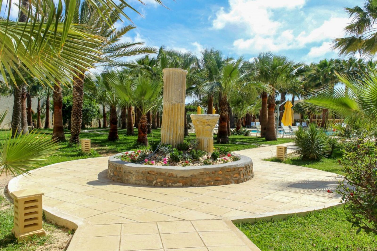 Разположение:  Хотела е разположен на източното крайбрежие на остров Джерба, ситуиран в палмова горичка съчетаващ екзотика, чар и спокойствие. Намира се на 3 км от град Мидун, на 14 км от гр. Хумт-Сук и на 20 км от международното летище Джерба-Зарзис. В близост: голф, боулинг, казино.