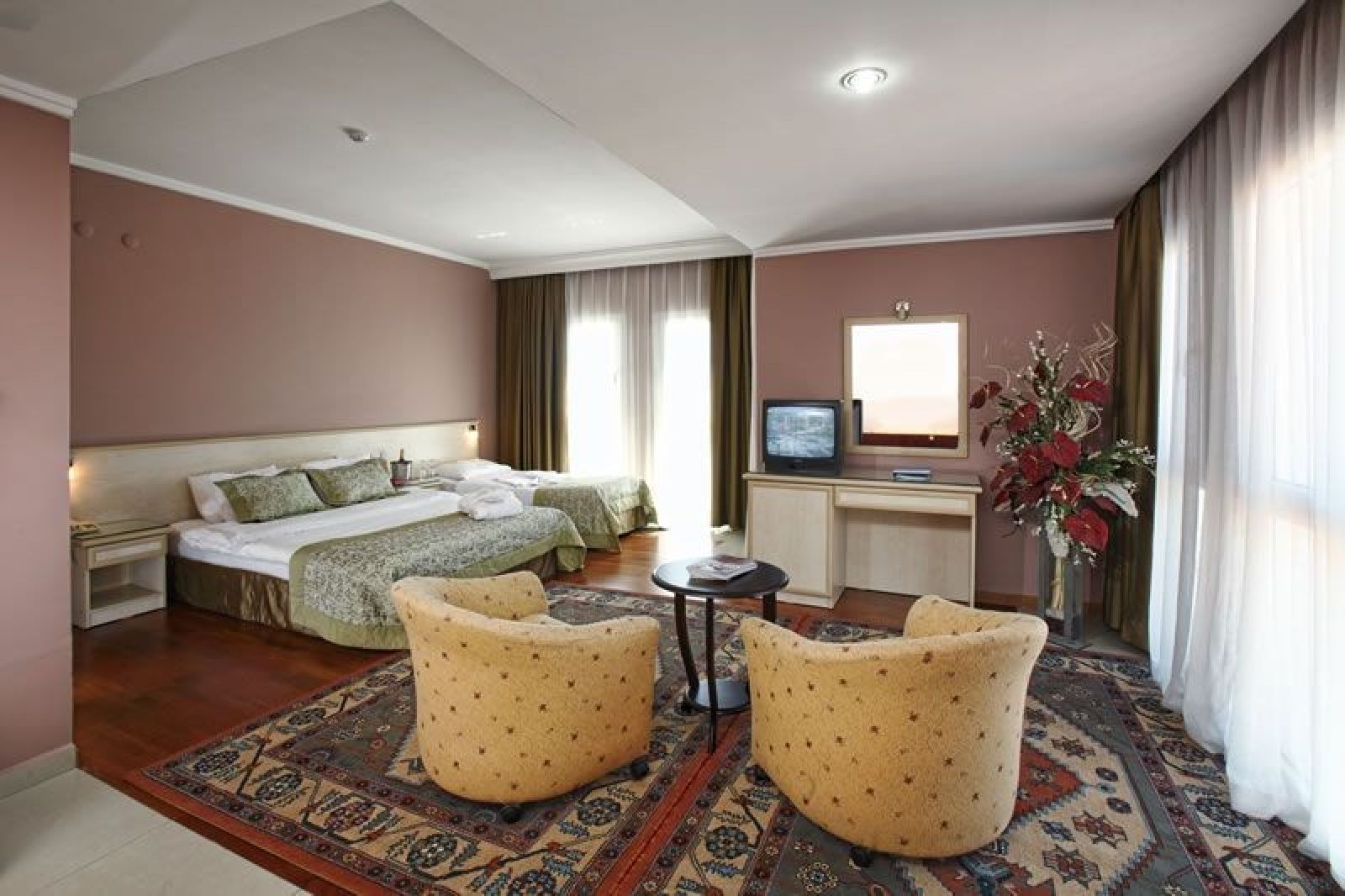 Хотелът разполага с 225 стаи - стандартни и семейни. Всички стаи са оборудвани с климатик, телевизия, телефон, сейф (безплатен), мини бар, баня с душ или вана, сешоар, балкон. Почистване на стаите всеки ден.
