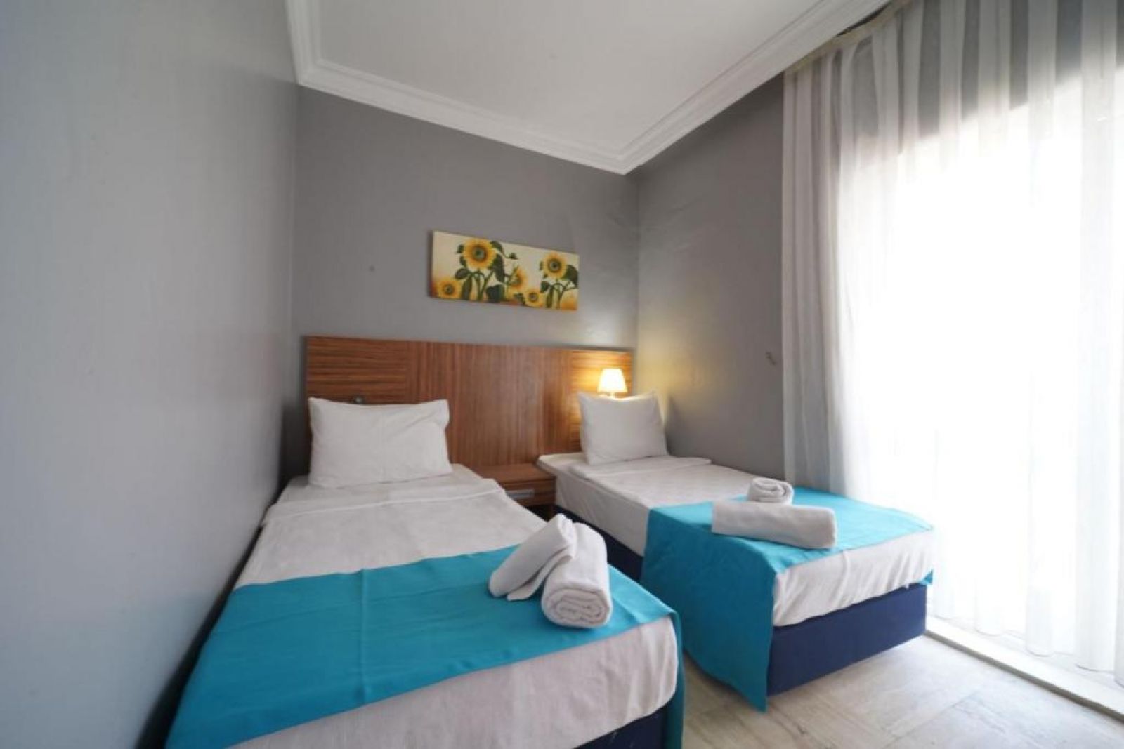 Разполага със стандартни стаи с вътрешен изглед (без балкон) и морски изглед с балкон, капацитет до трима души - 24 кв.м., фамилни стаи (с балкон) с капацитет до четирима души- 35 кв.м. Почистване на стаите всеки ден.