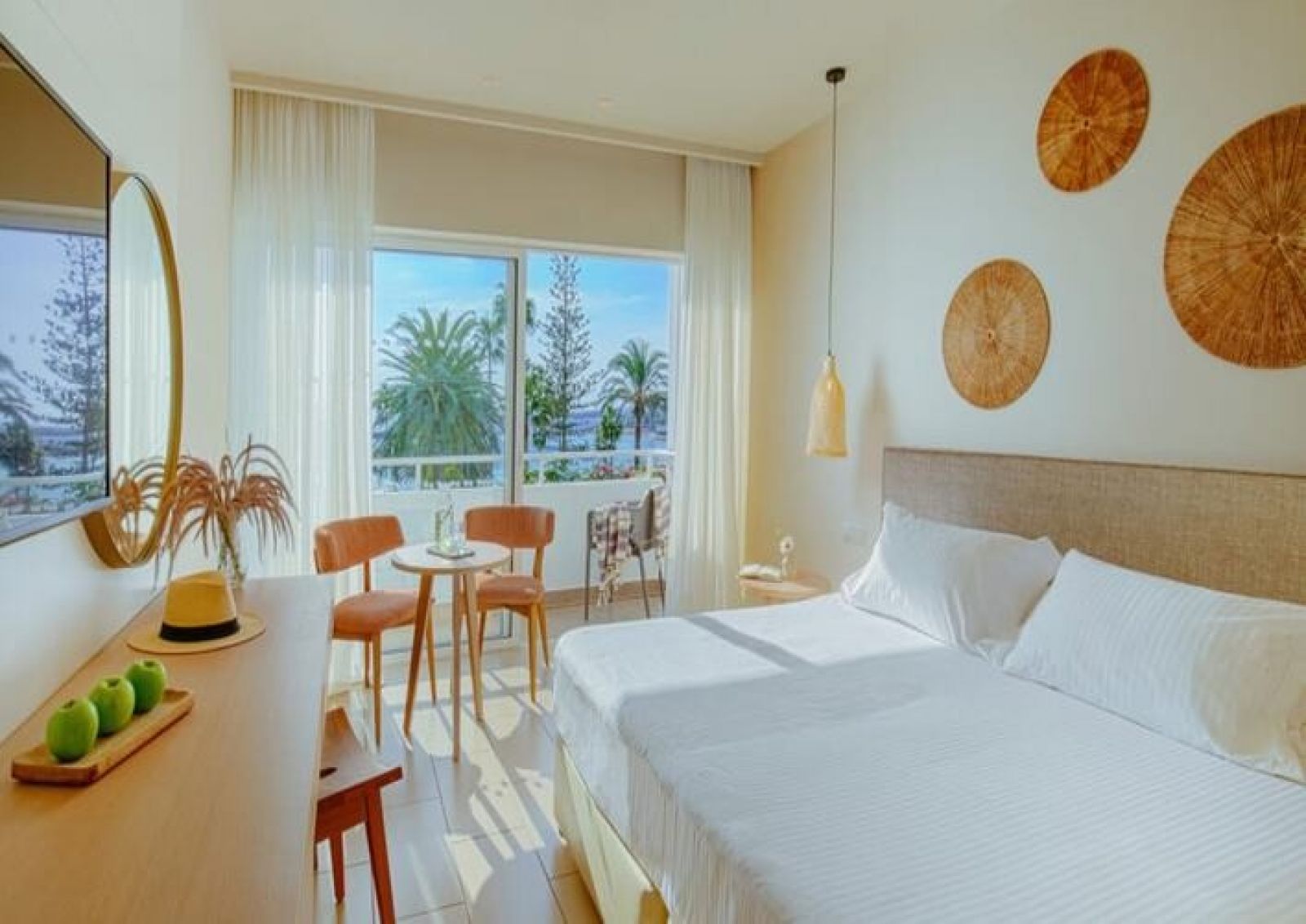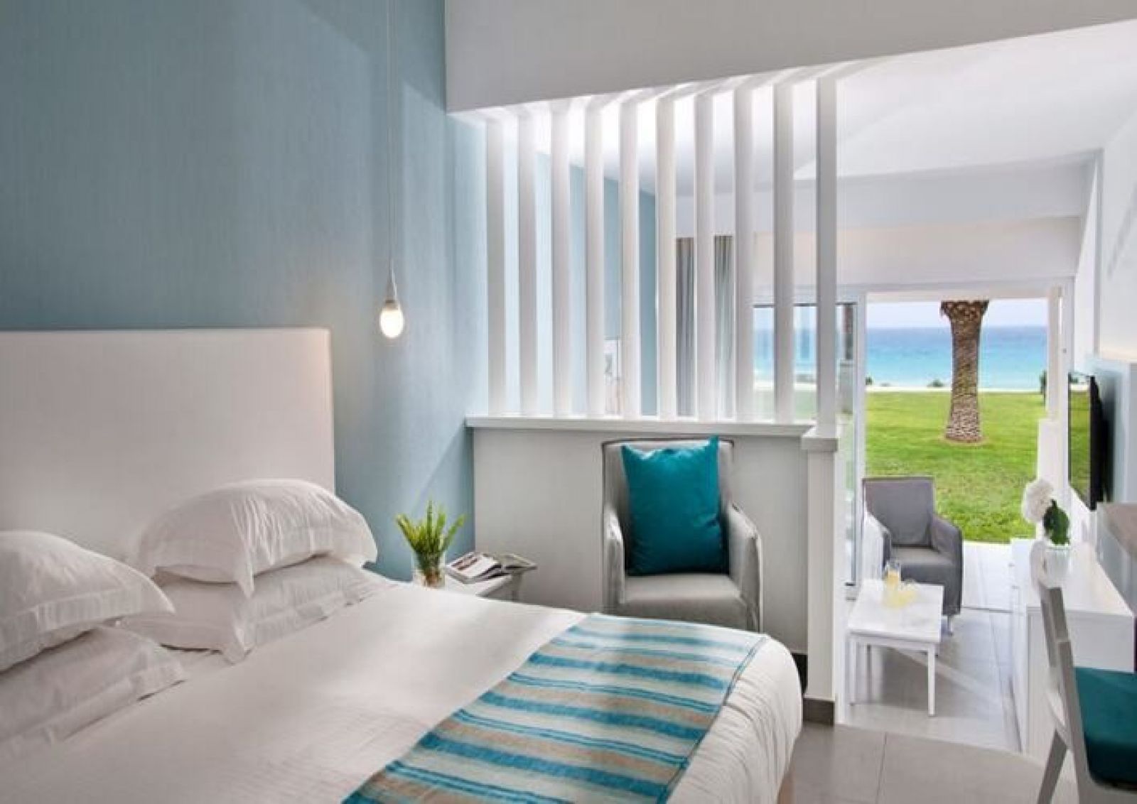 Всички помещения за настаняване в Nissi Beach Resort са с балкон или тераса с гледка към бистрите води на лагуната в залива Нѝси. Всяко помещение включва самостоятелна баня и телевизор със сателитни канали.