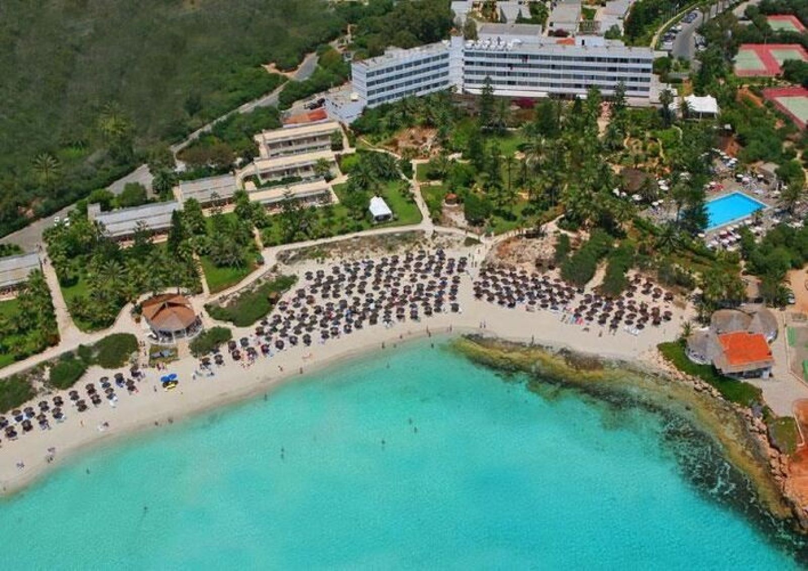 Nissi Beach Resort е разположен край частен плаж на Средиземно море, този 4-звезден хотелски комплекс има 3 басейна и тропически градини с площ 100 000 м². Предлага СПА център със сауна, хидромасажна вана и масажни процедури.