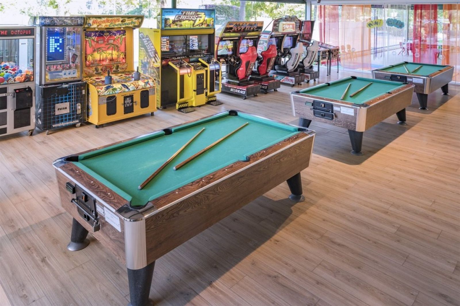 На Територията: Основен ресторант и бар. Закрит и открит басейн, сауна, парна баня и спа център. Вечерни програми за възрастни, игрална зала с различни забавления и игрални маси като билярд и други. Фитнес център, тенис корт и магазинчета.