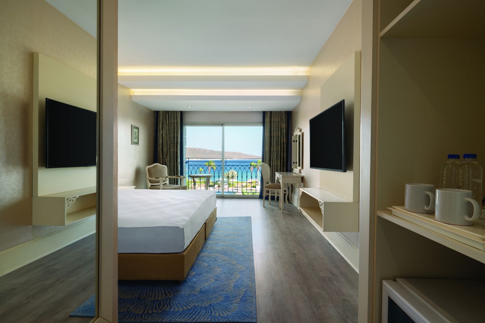 Хотелът разполага със 155 стаи, разплределени в две основни сгради: 14 Economy room (12-30 м²), 32 Standart room garden view (с френски балкон - 25 м²), 52 Standart room sea view (с френски балкон - 25 м²), 13 Deluxe room garden view (25 м²), 34 Deluxe room sea view (25 м²), 4 Terrace room with jacuzi (35 м²), 4 Cumba suite room (48 м²). Всички стаи са оборудвани с климатик, телевизор, телефон, баня с душ, сешоар, мини бар (платен), сейф (платен). Почти всички стаи са с балкон и с изглед море. Почистването на стаите - 3 пъти в седмицата, смяната на спалното бельо и кърпите - 2 пъти в седмицата.
