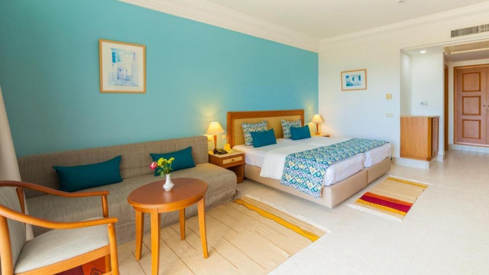 - Фамилна стая - 76 м2, максимално настаняване 4 възрастни + 1 дете, спалня + разтегателн диван, климатик, сейф, мини бар, Wi-Fi, мини бар, вана и душ, балкон.