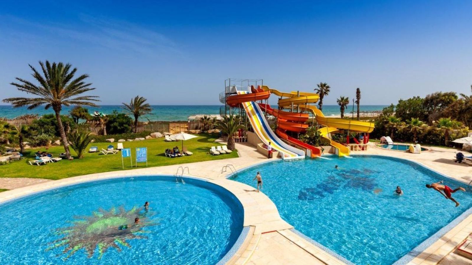 Хотелът предлага забавления за малки и големи - басейни с пързалки, пясъчен плаж, фитнес център, детска прощадка, 4 ресторанта и 6 бара, вечерна анимация, възможности за практикуване на водни спортове и др.