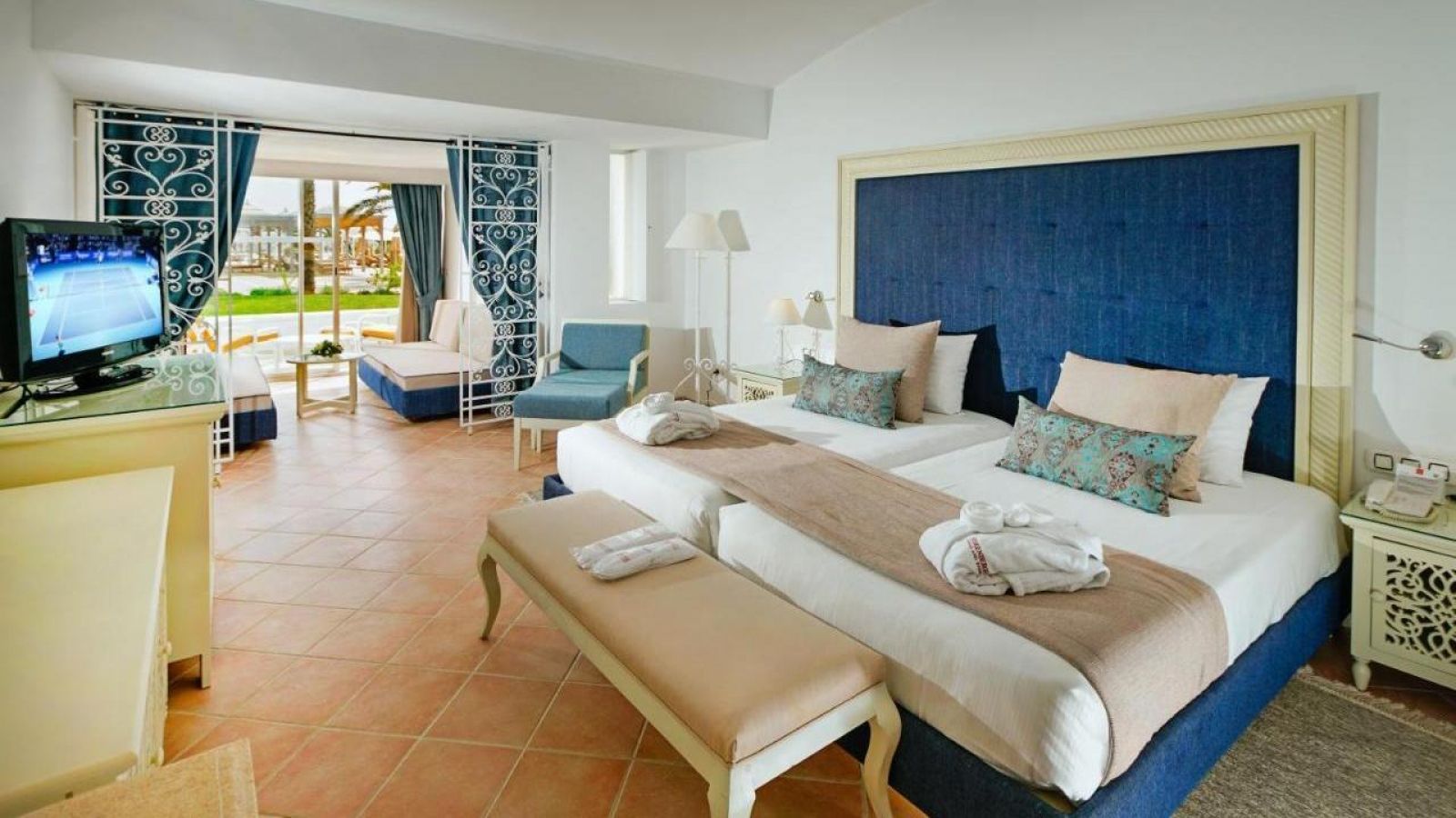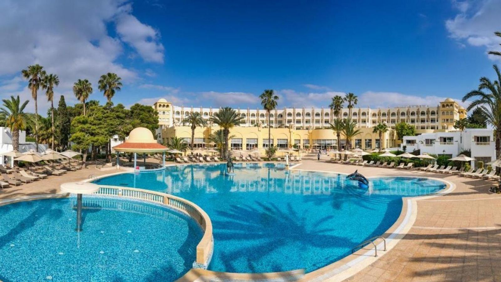 Хотелът се намира в южната част на Хамамет, в туристическата зона между стария град и Ясмин Хамамет, директно на частен пясъчен плаж. Разположен е сред просторна градина с палми, на около 3 км от центъра на Хамамет и на приблизително 65 км от летище Tunis-Carthage. Идеален избор за тиха и луксозна почивка с лесен достъп до атракции, магазини и голф игрища.
