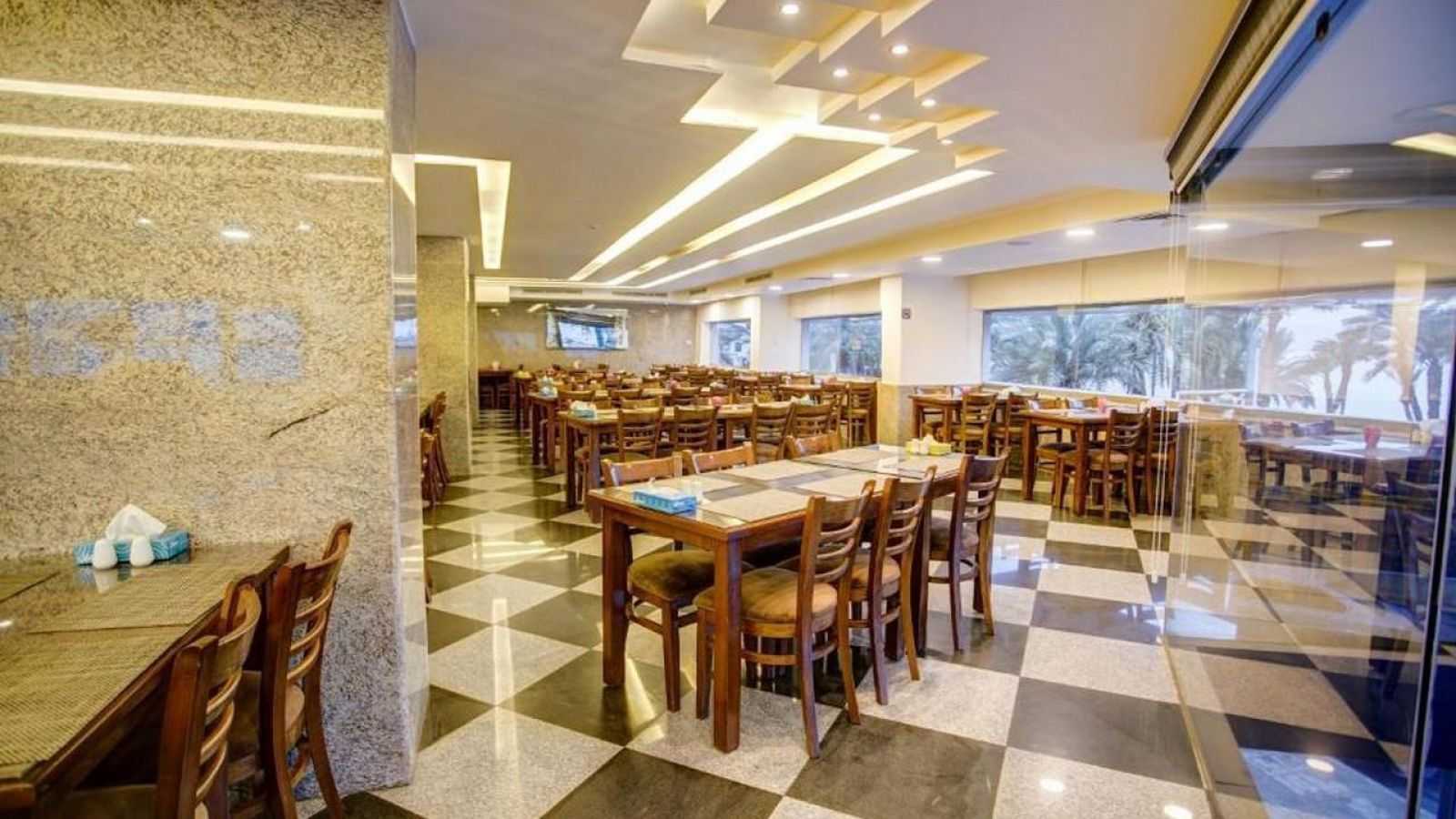 На място: الياسمين – сервира континентална, местна кухня, пица и морски специалитети, подходяща за закуска, обяд и вечеря; детски бюфет и опции за специални менюта (халал, безглутен)