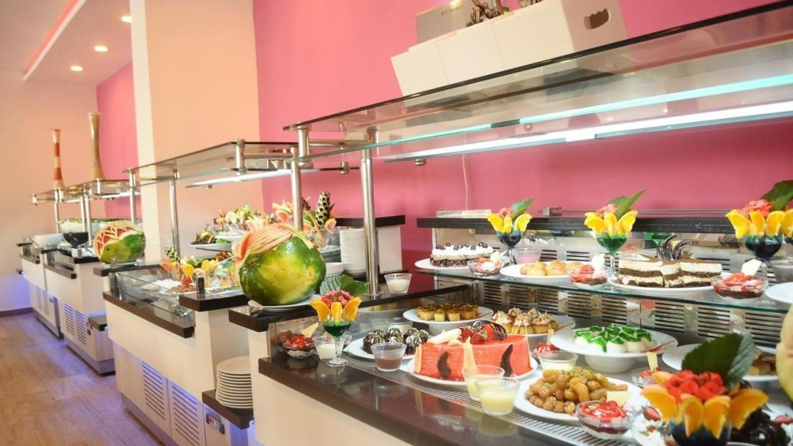 Основните ястия се сервират в основния ресторант (на самообслужване).