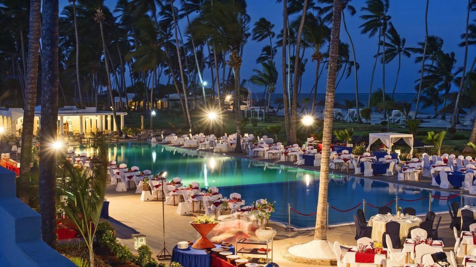 За вечеря може да тестват различни гурме ястия в главния ресторант “The Restaurant”, като – грил ястия, вегетариански и веган ястия, леки нисковъглехидратни специалитети, както и много специалитети от международната кухня. За тези от гостите, които биnа искали да опитат вкусна италианска пица и паста могат да отидат в ресторант “Andiamo”, който работи 6 дни в седмицата. В избрани вечери ресторантът на открито “The Breeze” сервира изящни морски ястия – срещу доплащане. Последният ресторант, но не на последно място по вкуi “African Boma” сервира африканска кухня с международен привкус.