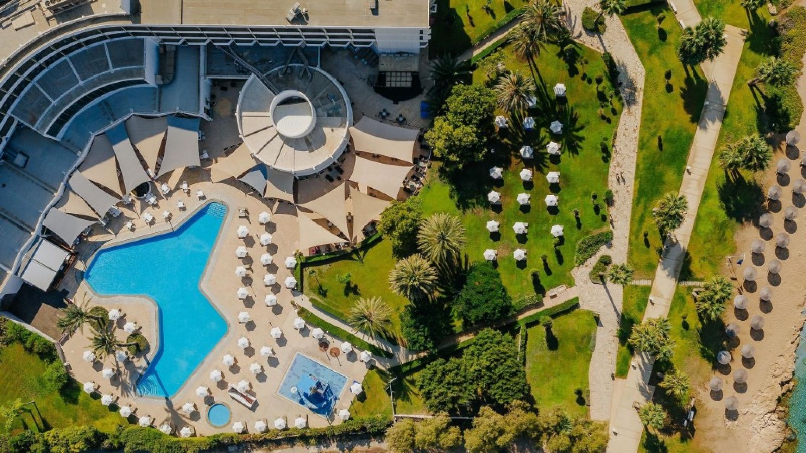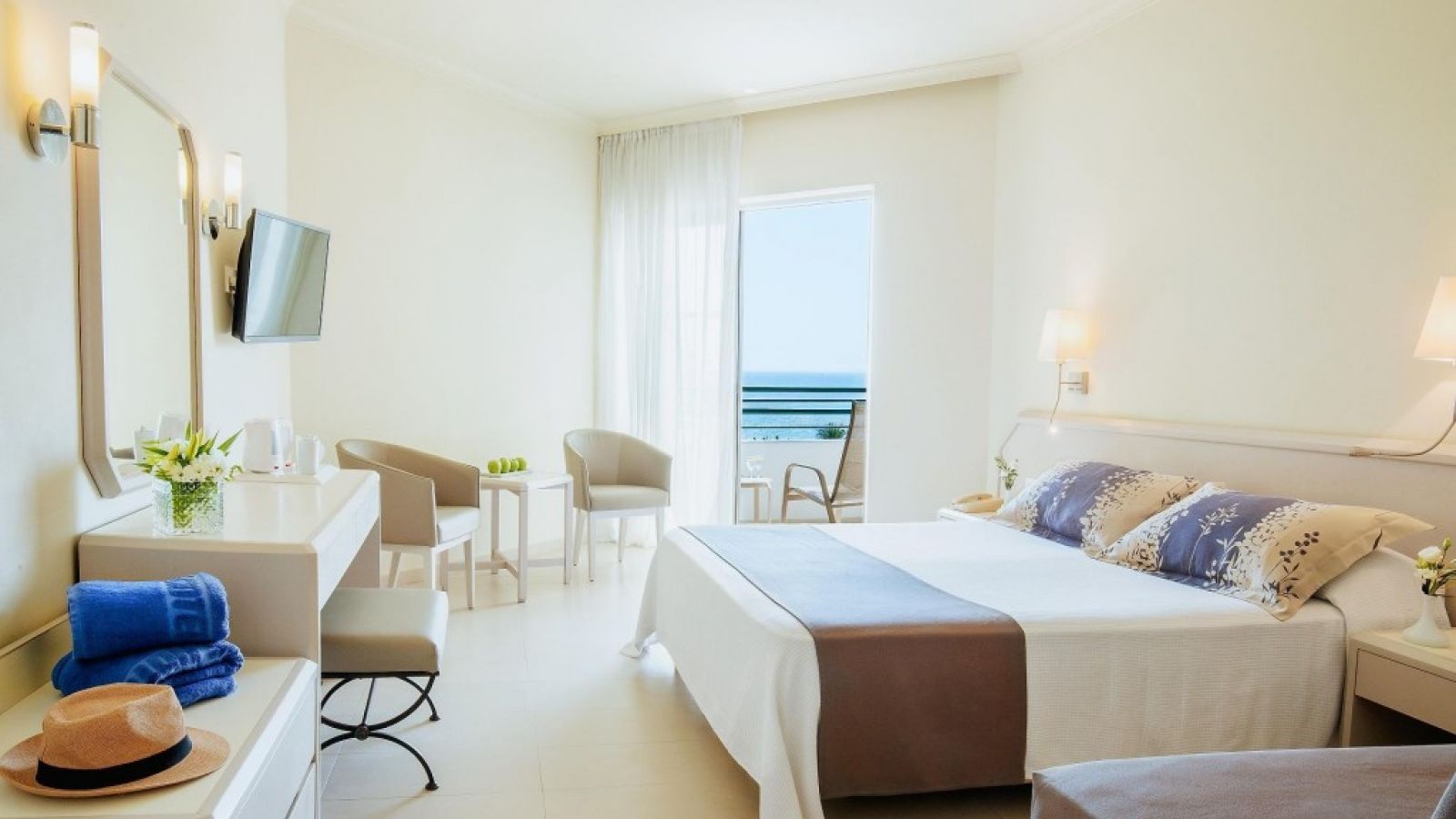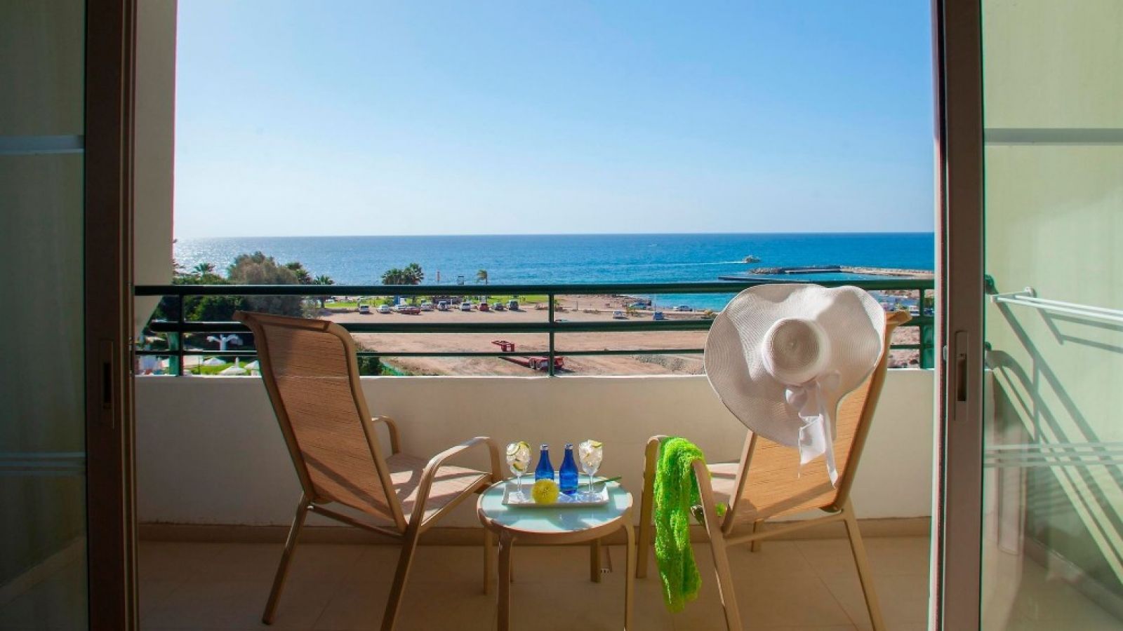 Хотелът предлага панорамна гледка към пристанището и замъка Пафос. Предлага стаи със сателитна телевизия и самостоятелни балкони, както и открит и вътрешен басейн. Всички стаи в хотела разполагат с изобилие от естествена светлина, климатик, минибар и удобства за приготвяне на чай/кафе. Някои стаи предлагат невероятна гледка към Средиземно море.