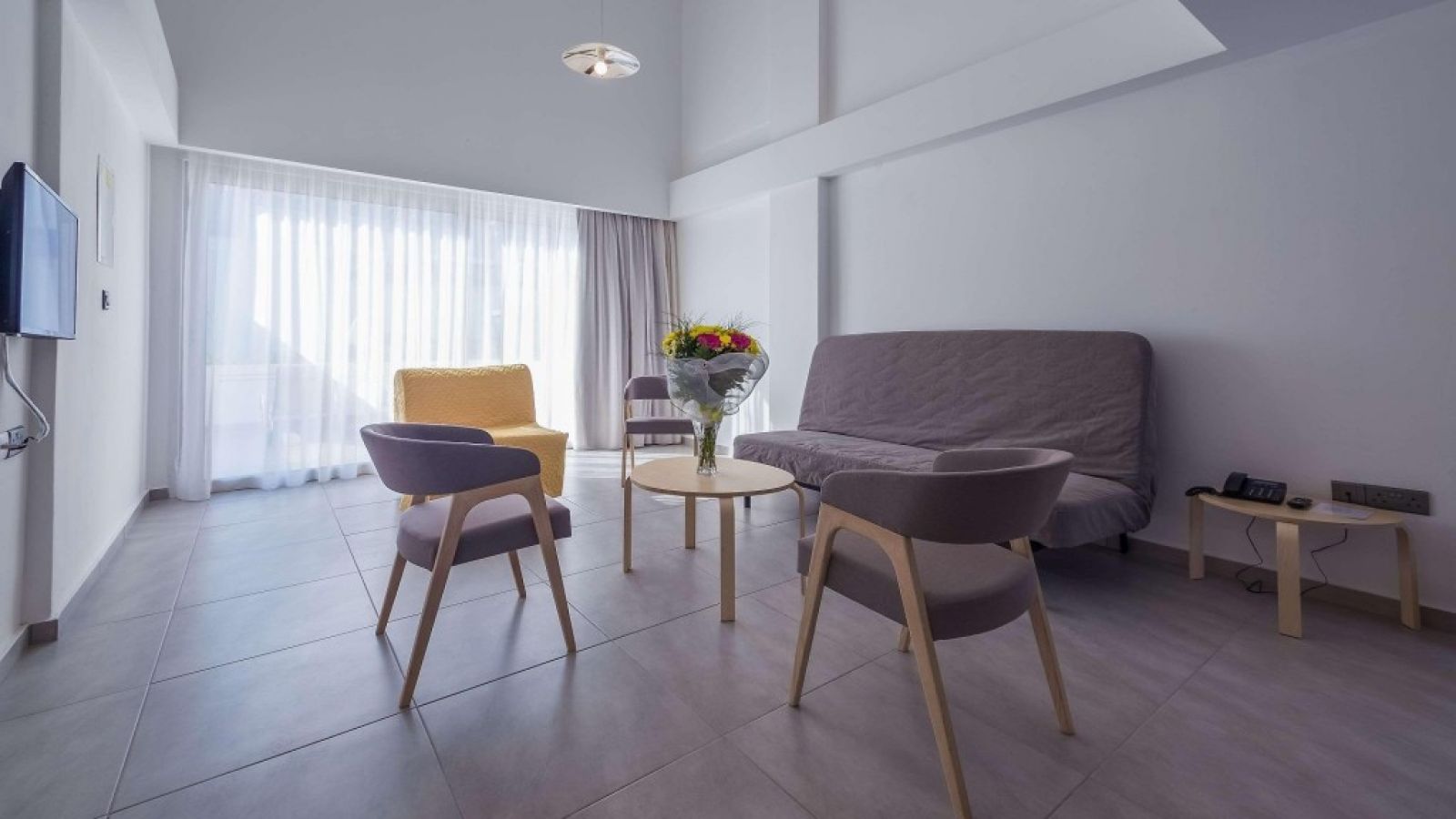 В стаите: Климатизирани и шумоизолирани, някои от стаите са с тераса и гледка море. Сателитна телвизия, безплатно WiFi, сешоар, кана за кафе и чай, бюро