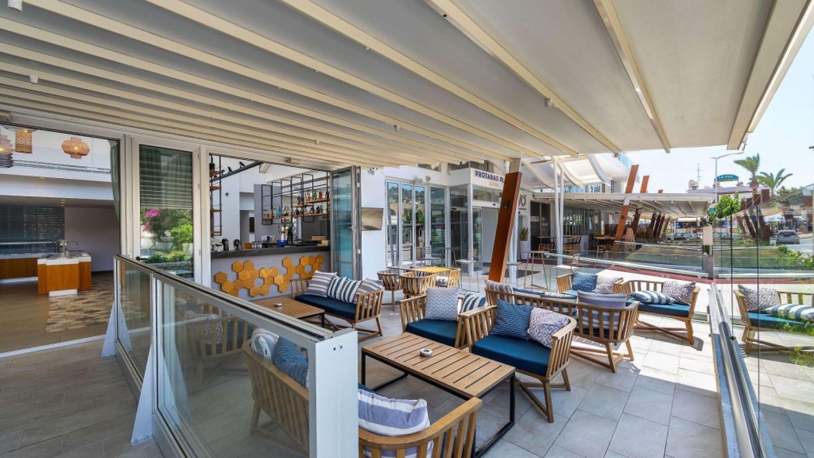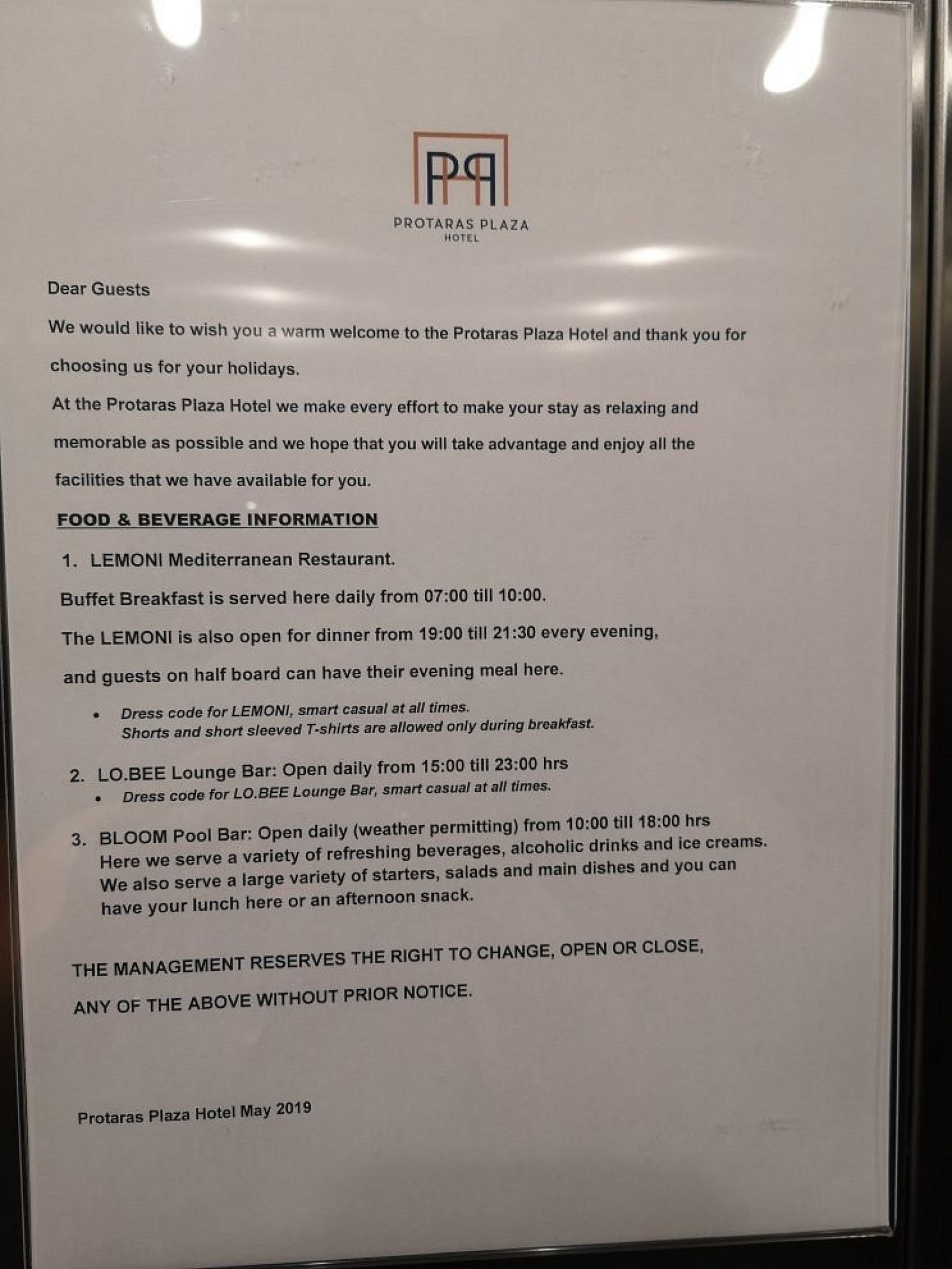 На територията на хотела: Външен басейн с шезлонги и чадъри и вътрешен басейн. Фитнес зала, сауна и нощен бар Revo, разположен на обширната тераса- солариум на покрива на хотела. Снек барът до басейна, Bloom, предлага напитки и междинни хранения през деня, а ресторант Lemoni ще Ви очарова с качеството на средиземноморската си кухня. Лаундж бар и суши ресторант, коферентна зала.