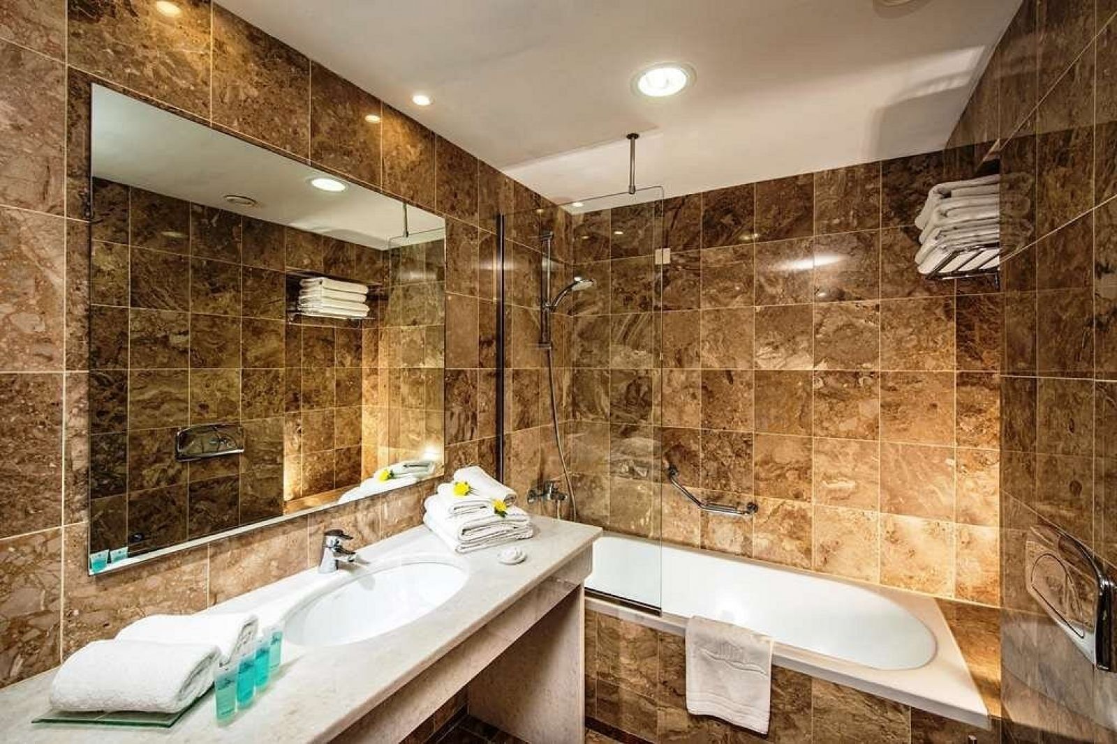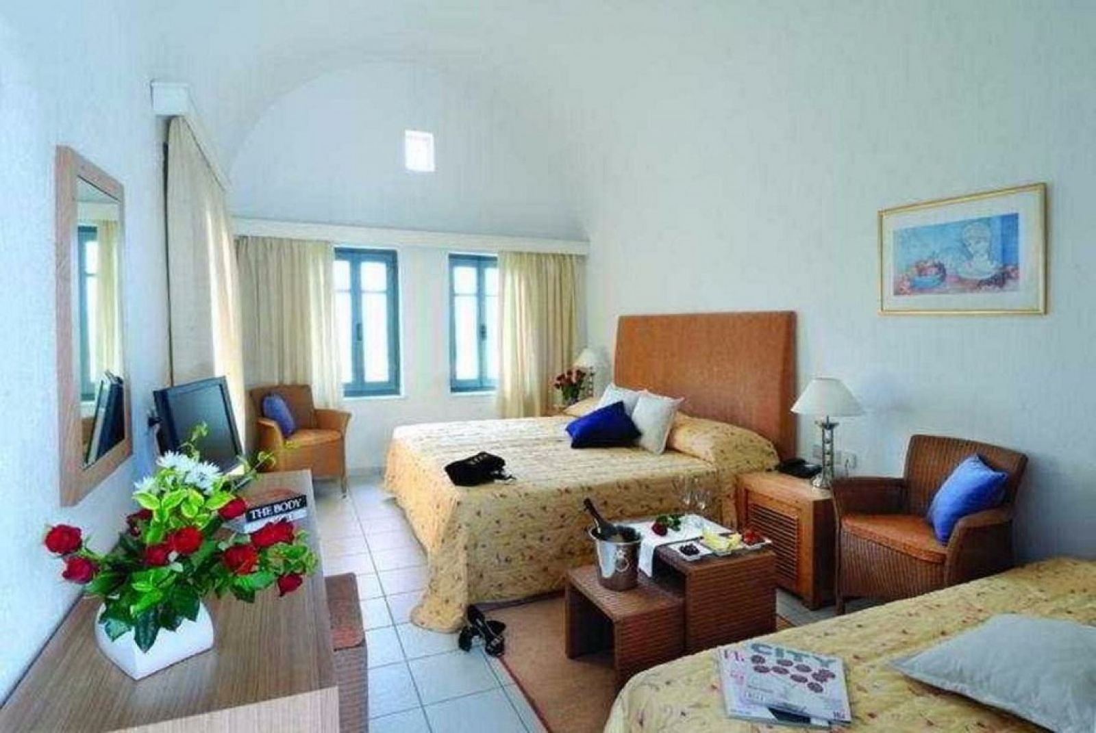 В стаите: Всяка стая разполага с баня със сешоар, телефон, климатик и сателитна телевизия с руски канал. Осигурени са също сейф, мини хладилник и минибар. За удобство на гостите са осигурени ютия, балкон или тераса, халати и чехли в апартаментите, както и джакузи.