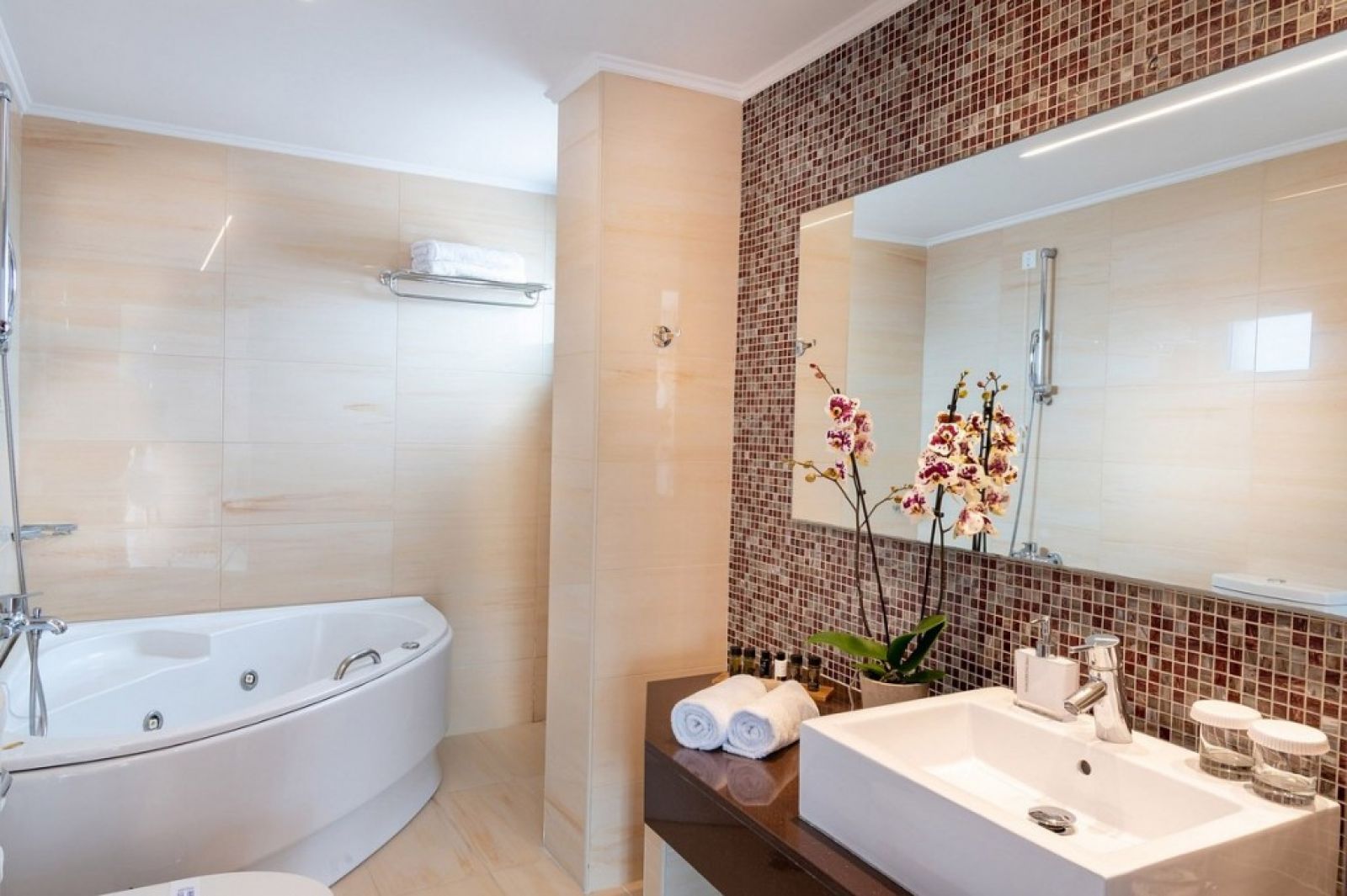 В стаите: В стаята се предоставя сейф. Спалното бельо се сменя 4 пъти седмично. Рум-сървис се предлага при поискване срещу допълнително заплащане. Стаята разполага с хладилник, аксесоари за баня, сешоар, чехли, климатик, сателитна телевизия, Wi-Fi и телефон. Стаята се почиства ежедневно. Подът е от керамични плочки. На гостите се предоставя вана или комбинация от душ/вана. Стаята разполага и с балкон или тераса.