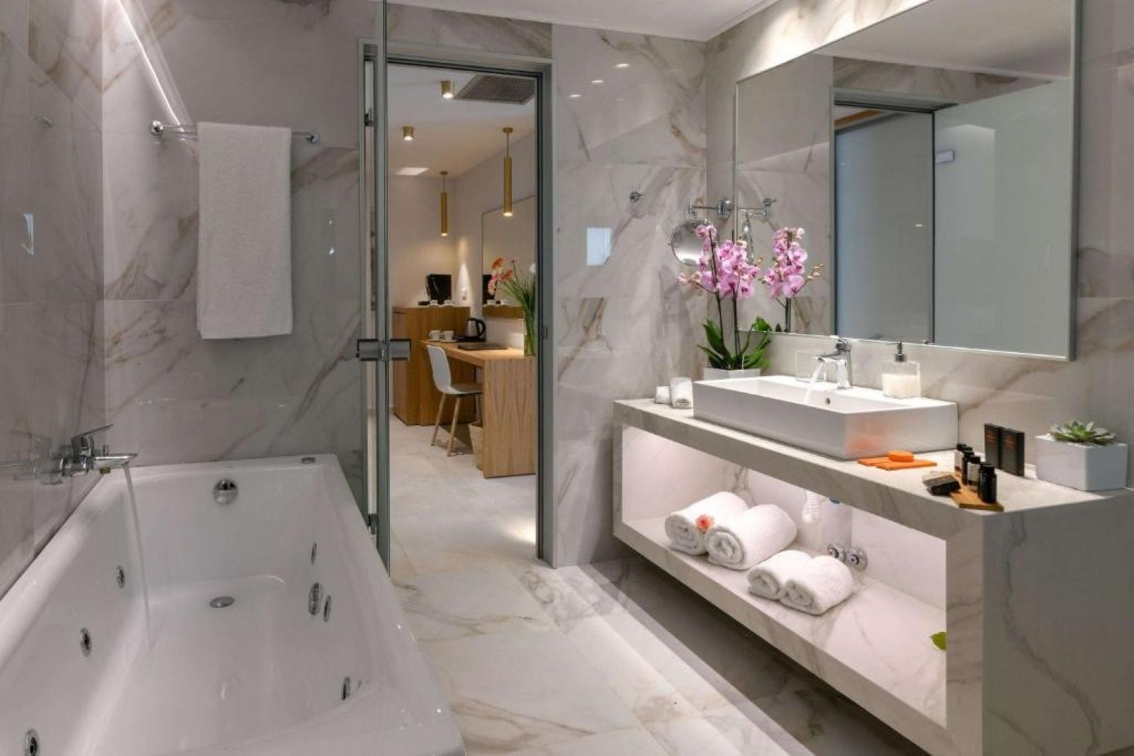 В стаите: Стаята разполага с баня с вана или душ, тоалетна, сешоар, халат и чехли. Осигурени са също тоалетни принадлежности, климатик, телевизор, телефон, мини хладилник, удобства за приготвяне на чай и кафе, Wi-Fi и сейф.
