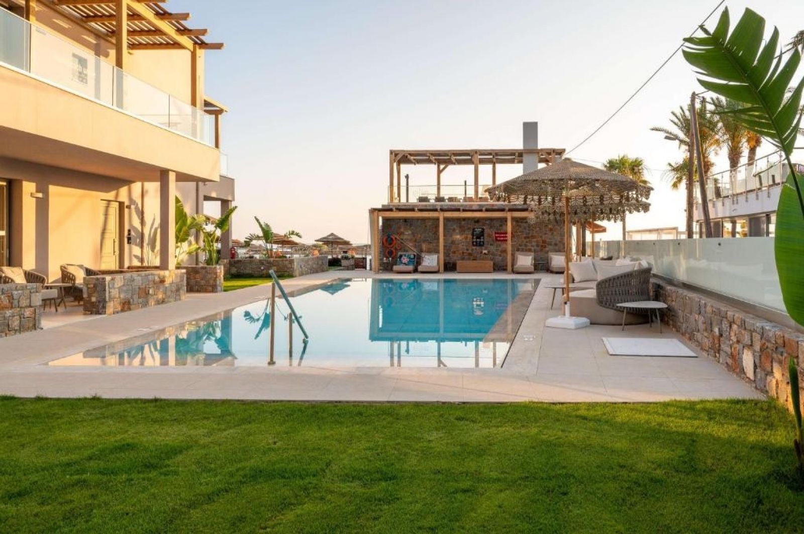 Плаж: Частен пясъчен плаж на 50 м от хотела, на първа брегова линия. Осигурени са плажни кърпи. За гостите, отседнали в категориите Suite, шезлонги и чадъри се предоставят безплатно.