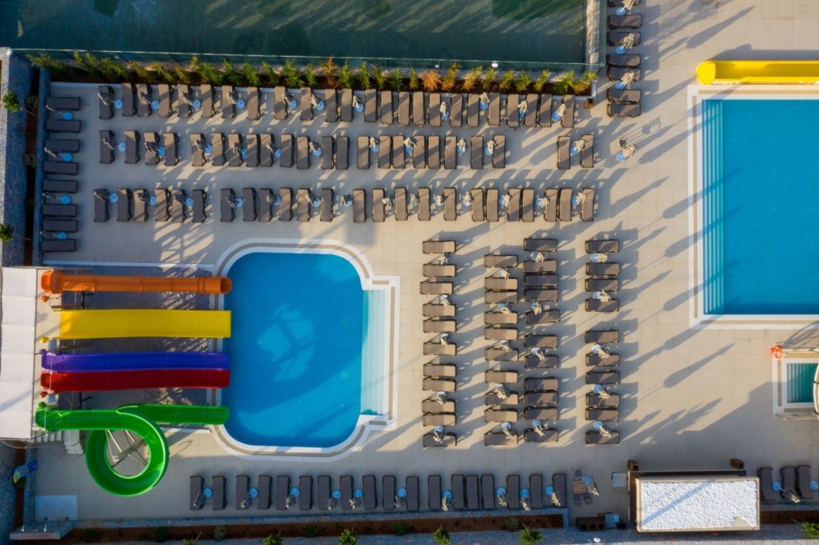За децата: Нашият хотел предлага широка гама от удобства за семейства с деца. За по-малките гости има два открити басейна с прясна вода и водни пързалки, детско меню в ресторанта, както и външна детска площадка с ограда и мека настилка. За активен отдих има пет игрални зали и детски клуб за деца на възраст от 4 до 12 години. За родителите, които искат да се отпуснат, предлагаме услуги за гледане на деца при поискване срещу заплащане. Разполагаме също с подгревател за шишета и безплатно детско креватче при поискване. Бебешка вана, количка и столчета за хранене в ресторанта. За удобство на всички гости в обществените тоалетни са монтирани специални устройства за смяна на пелени.