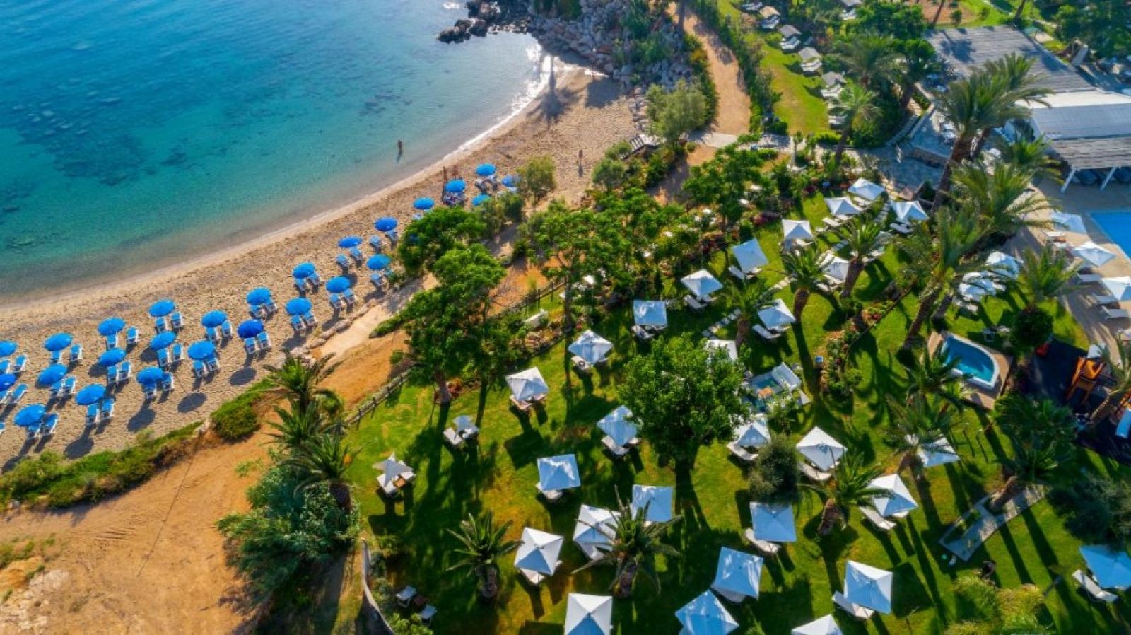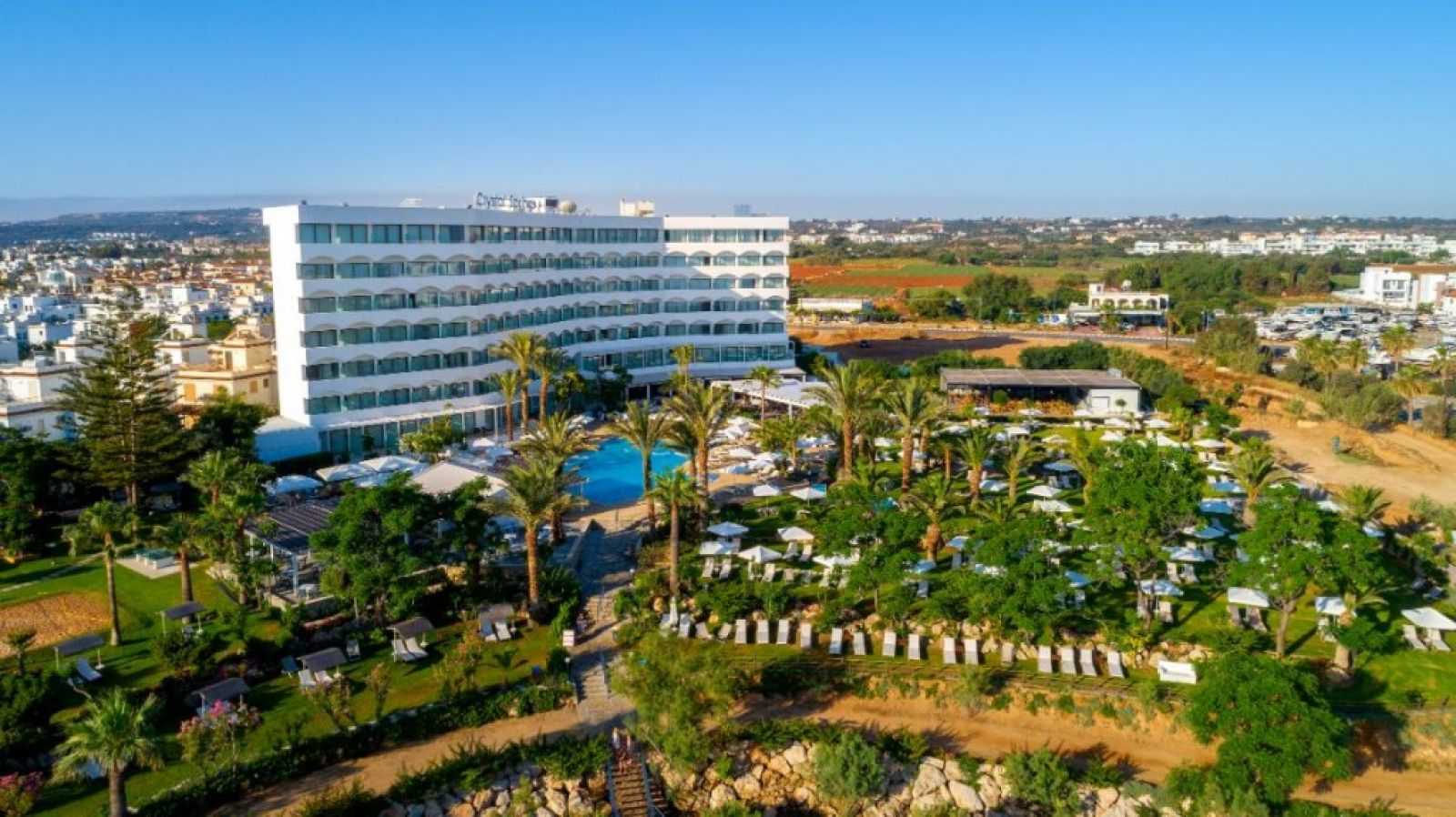 Курортът е заобиколен от буйни озеленени градини, до живописно рибарско пристанище, на 5 километра от село Протарас. Светлите стаи разполагат с обзаведен балкон, климатик, сателитна телевизия и самостоятелна баня със сешоар. Разполага с открит басейн с обособен детски кът, тераса за слънчеви бани, СПА център, фитнес център, тенис корт и анимационна програма. Ресторантът предлага международна и регионална кухня, специално детско меню и тематични вечери. Баровете на хотела предлагат богат избор от топли и студени напитки и алкохолни коктейли. Извън хотела гостите ще намерят огромно разнообразие от магазини и кафенета, разнообразие от развлечения, както и оживен нощен живот. Ето защо хотелът е идеален както за двойки без деца, така и за семейства.