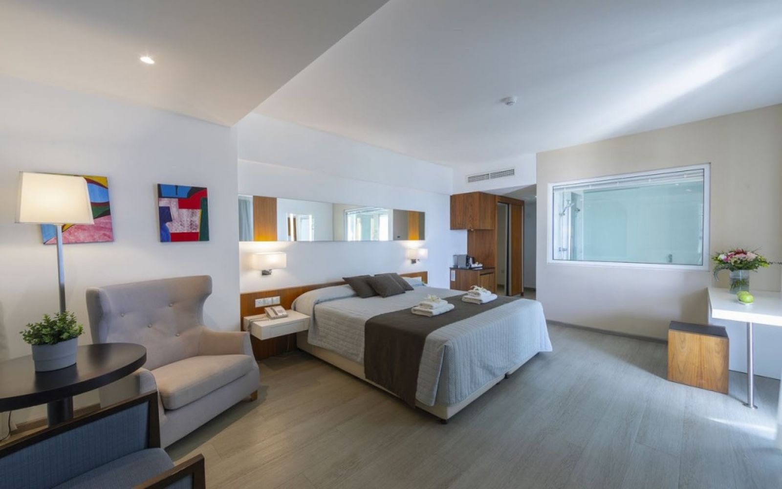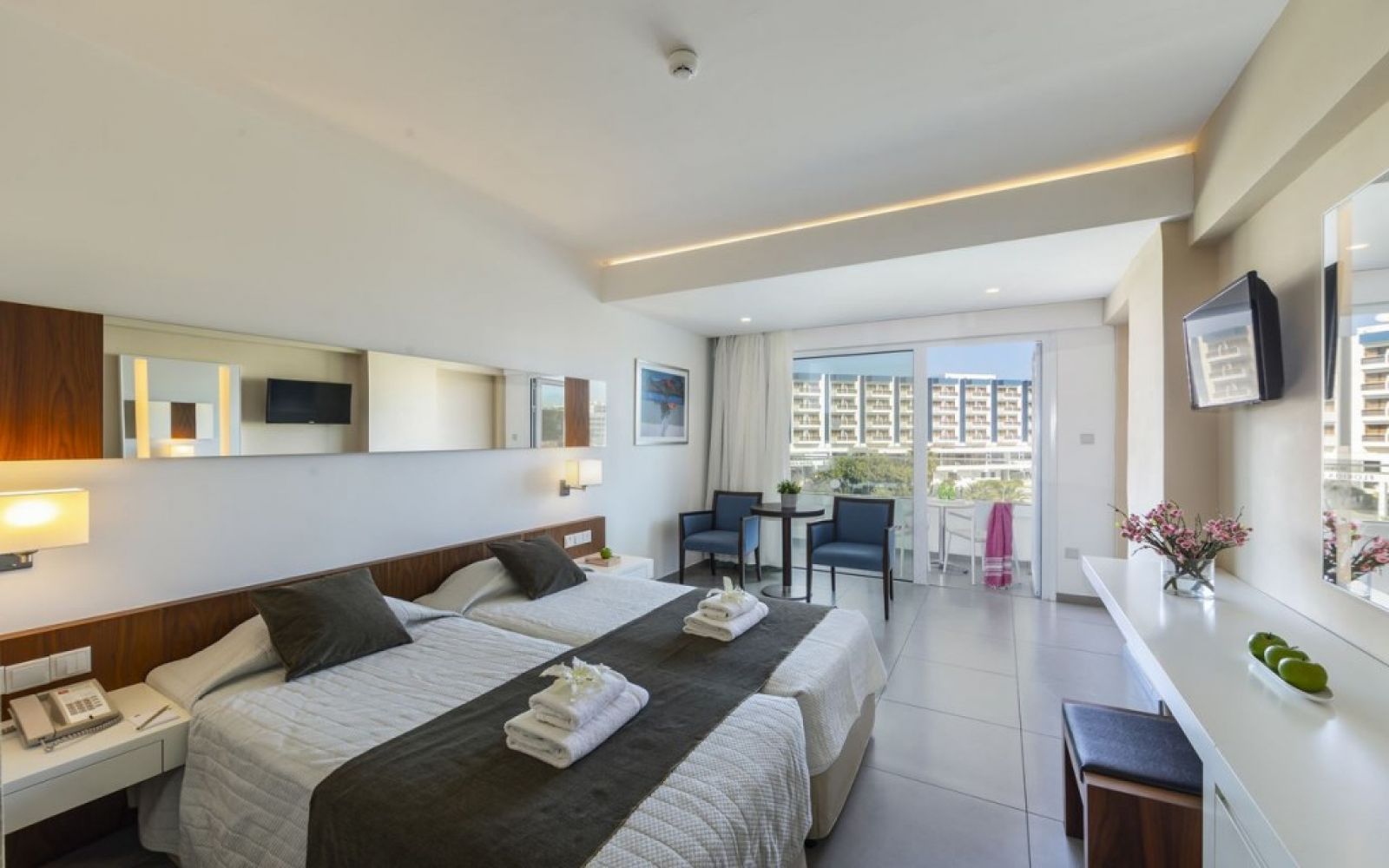 Разположен на пясъчен плаж със Син флаг, само на минути от центъра на града в курортния град Агия Напа. Хотелът е подходящ за двойки, които искат да релаксират или да прекарат романтична почивка, за семейна почивка или просто за любители на забавлението. Гостите могат да се насладят на открит и закрит плувен басейн, сауна, парна баня и хидромасажна вана. Хотелът разполага и с фитнес център. В целия имот има безплатен Wi-Fi. Предлага няколко басейна за възрастни и басейни за деца, ресторанти и барове с голям избор от средиземноморска и международна кухня и сладкиши, плодове и вкусни десерти. Другите удобства включват спа център, игрища за тенис и плажен волейбол, зала за игри с електронни игри и тенис на маса, както и детски клуб и детска площадка. На 200 метра от хотела има много ресторанти, таверни и магазини. Всеки ден има развлекателна програма за гостите с жива музика, народни танци, магическо шоу и детска дискотека.