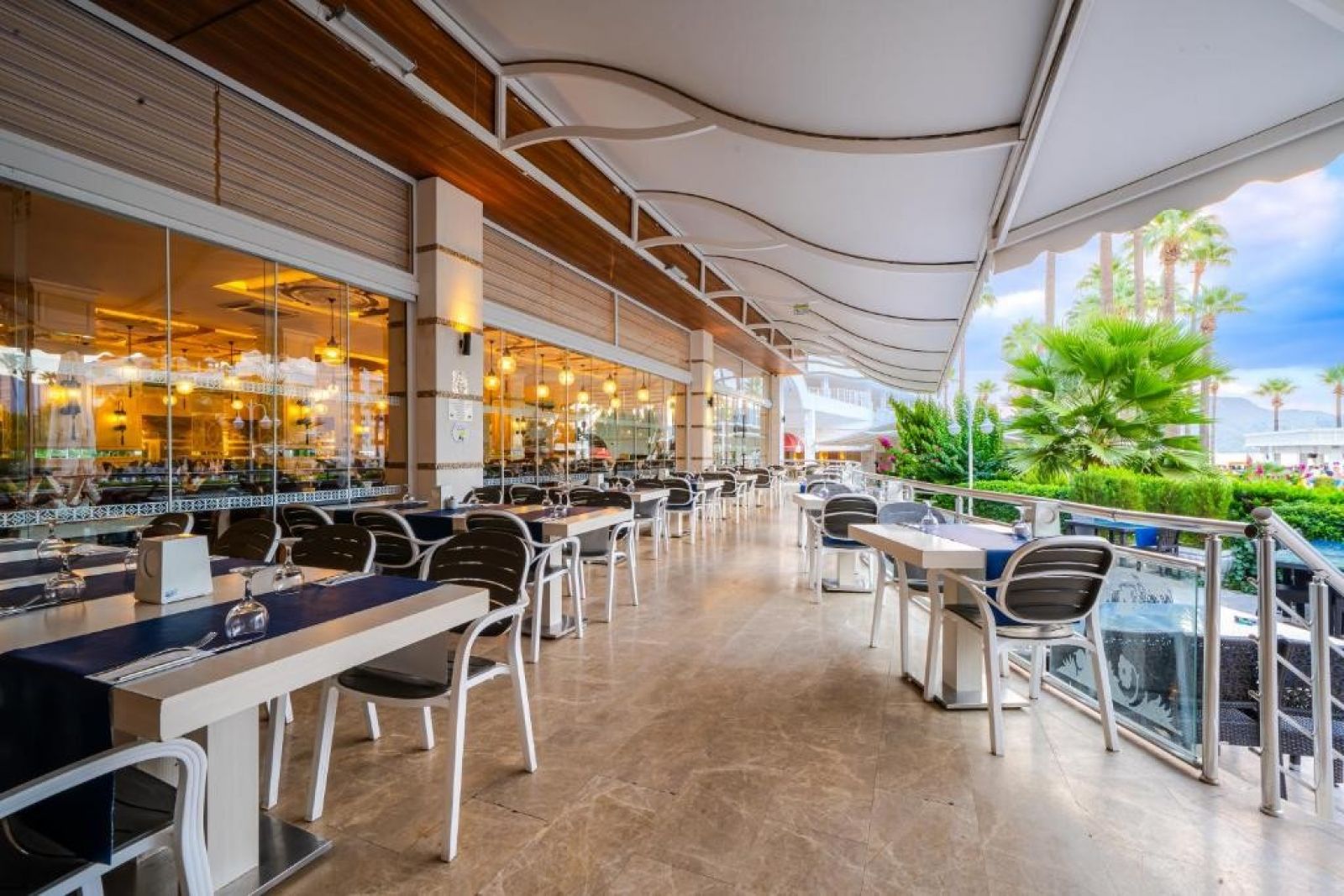 На територията на хотела: Основен ресторант, 2 а-ла-карт ресторанта, 4 бара, сладкарница, дискотека, 2 открити и 1 закрит бесейн, водни пързалки (работят 3 часа на ден), конферентна зала, СПА център, фитнес, турска баня, сауна.