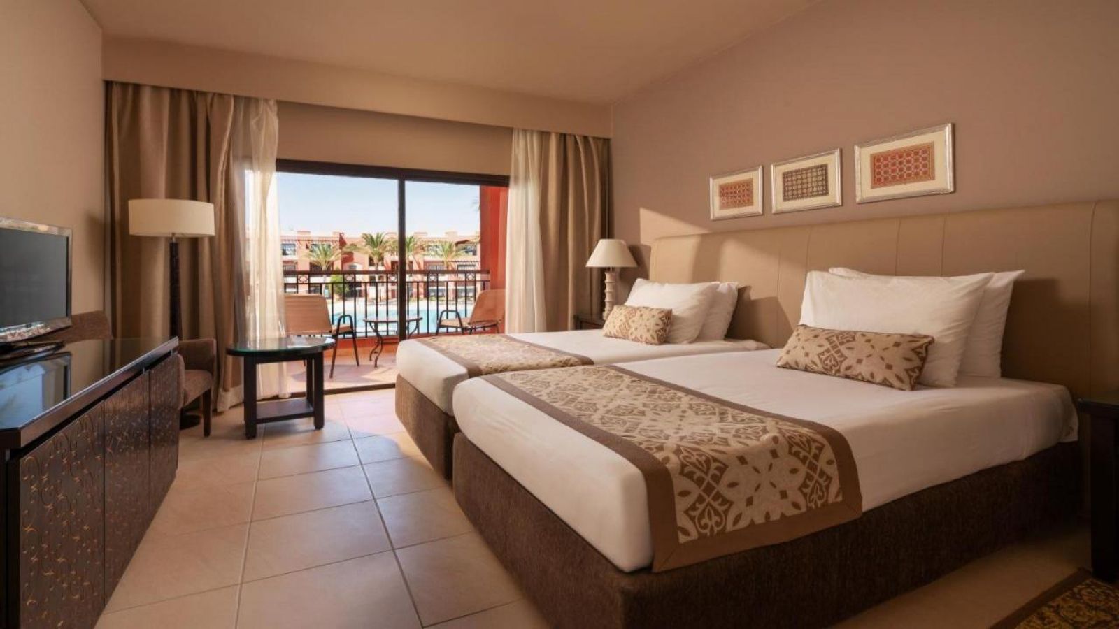 Локация: Разположен в красивото Almaza Bay, само на 45 км от летище Мерса Матрух, с директен достъп до частния плаж и чистото море.