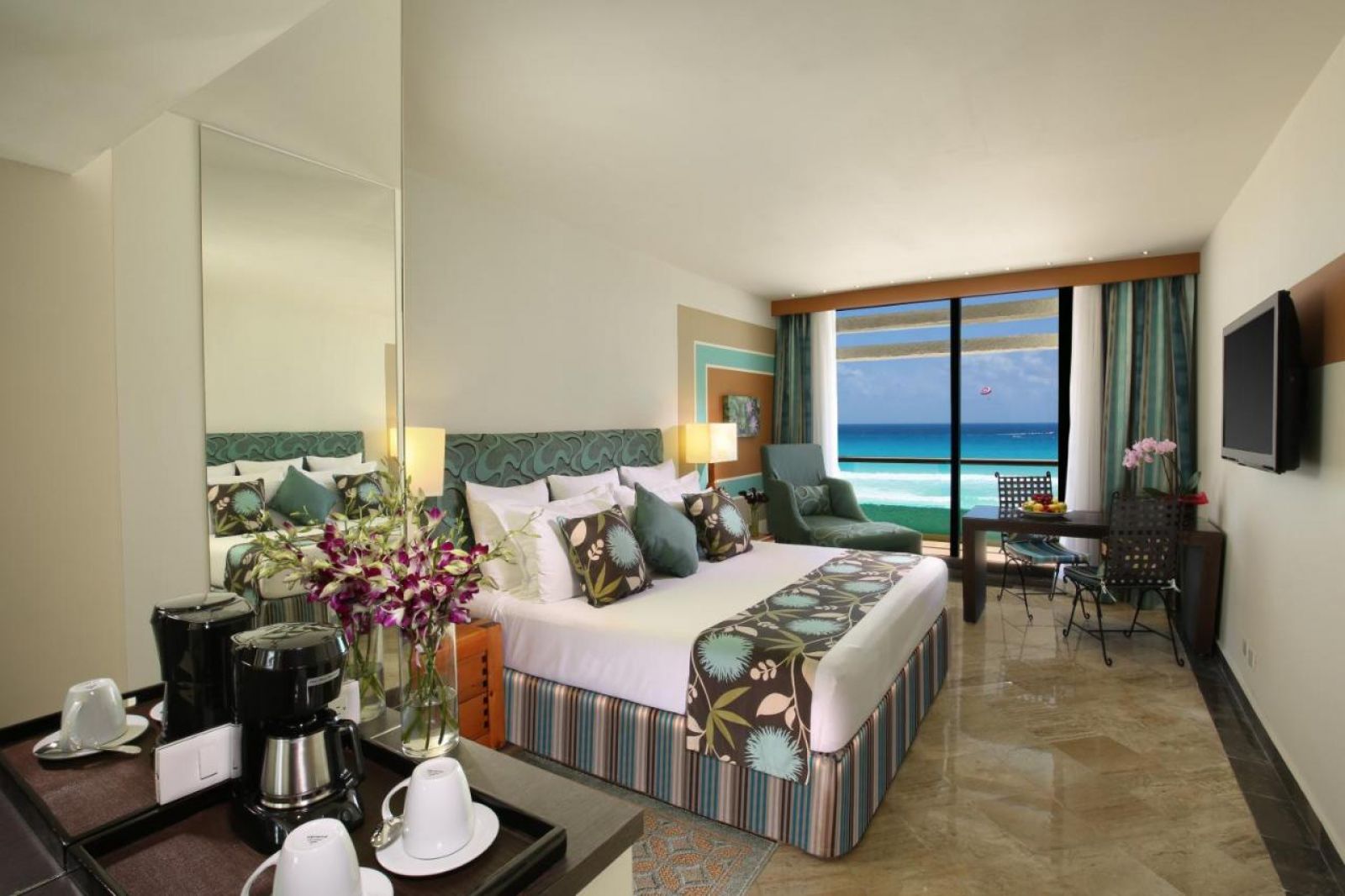 Oasis Ocean View Room - обща площ на стаята 60 кв.м, спалня (две големи единични легла или едно двойно легло), балкон/тераса, изглед към морето.