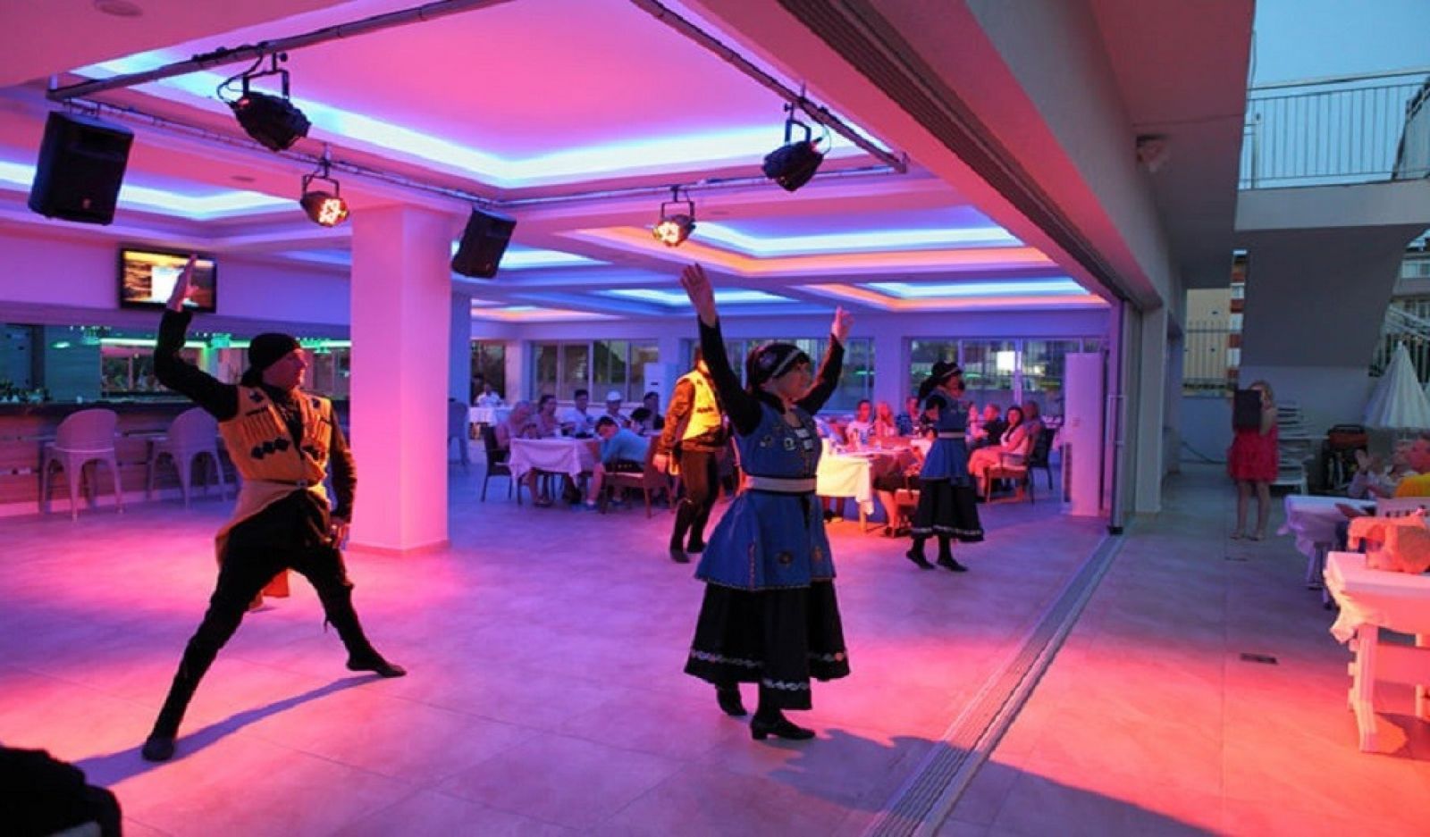 На територията на хотела: Един основен ресторант със закрита и открита част, 1 лоби бар, 1 бар до бассейна, 1 основен външен басейн, 1 басейн с пързалки за възрастни и деца, детки басейн ( обособена зона до основния басейн), малък СПА център, дискотека и шоу програма (2 пъти в седмицата), WiFi – безплатен в лоби и в ресторанта, 24 часова рецепция.