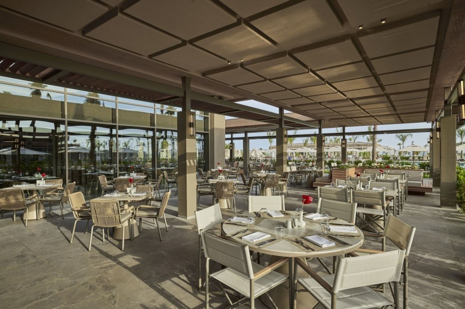 Основен ресторант (тематични вечери 7 дни в седмицата, диетичен и веган бюфет), 5 а-ла-карт ресторанта (италиански, с егейска кухня, турски - 1 безплатно посещение на 1 от ресторантите при минимум 7 нощувки, с предварителна резервация; интернационален и с кухня от далечния изток – срещу заплащане, с предварителна резервация), 1 снек ресторант, бистро 24/7, сладкарница, кафене, 11 бара (един от които 24/7), 11 открити и 1 закрит басейн (отопляем в периодите 21.03-30.04 и 01.10-31.10), аквапарк с 5 водни пързалки за възрастни и 3 за деца, СПА център, магазини, 3 конферентни зали.